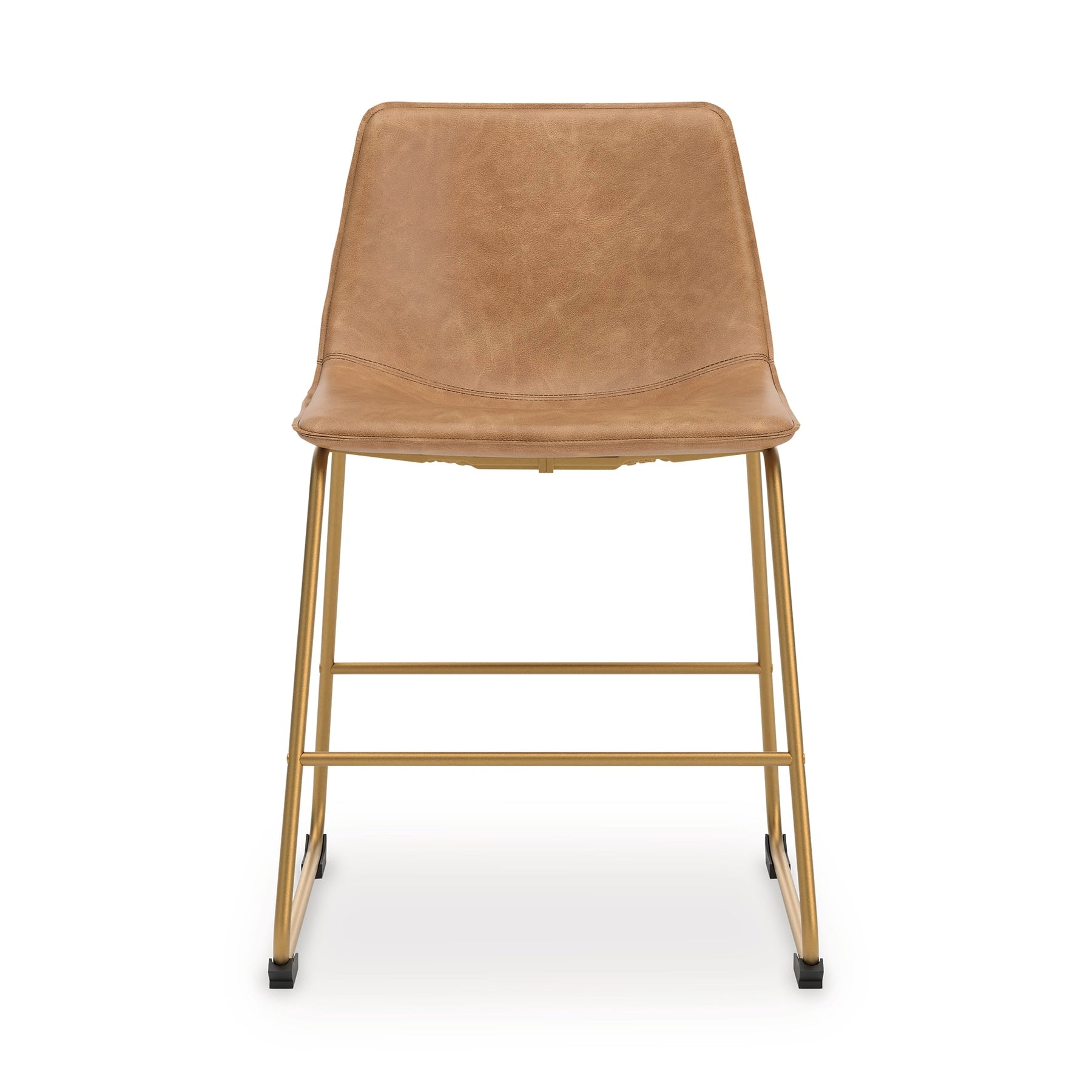 Details Made with metal frame, engineered wood and foam cushion, Frame with durable goldtone powder coat finish, Faux leather upholstery, Contoured bucket seat
