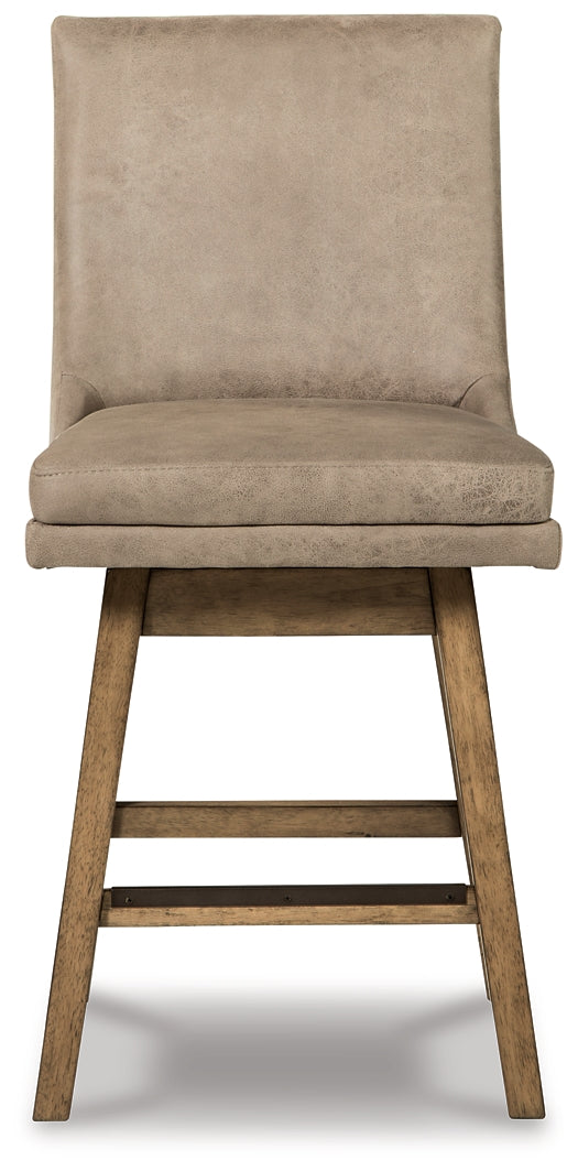 Made of wood, Faux leather upholstery, Foam cushioned seat and back, Swivel seat with self-return feature, Footrest for added support, Assembly required |