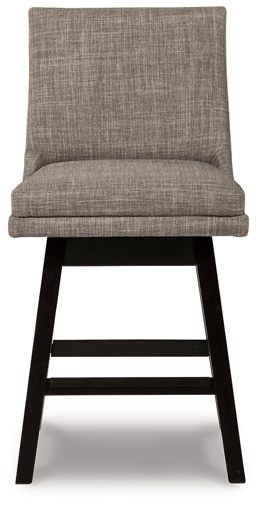 This striking barstool invites you to take contemporary modern style for a spin. Comfortably cushioned seat, self-returning swivel and contoured back make it beautifully in tune with your needs. Luxurious faux leather upholstery is a sensational touch.