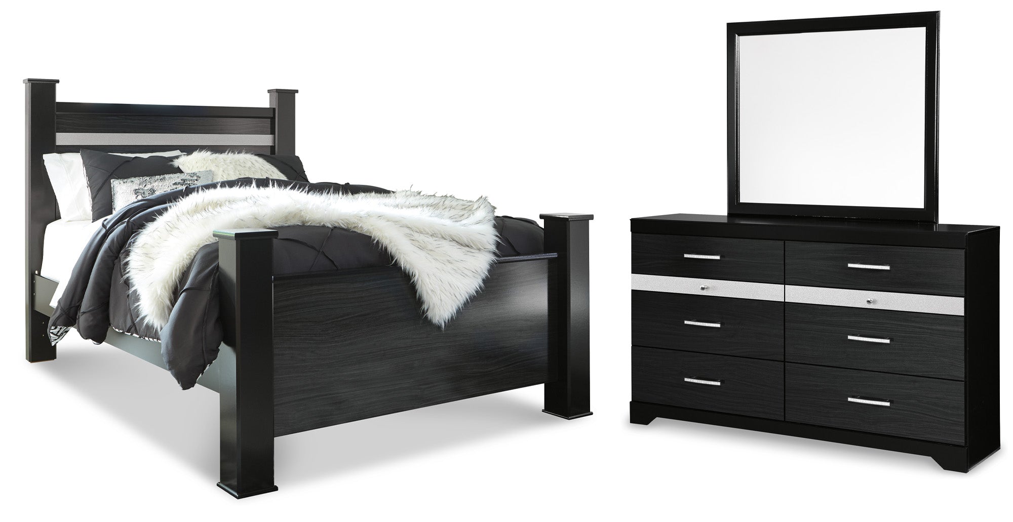 Wynnlow Queen Poster Bed with Mirrored Dresser