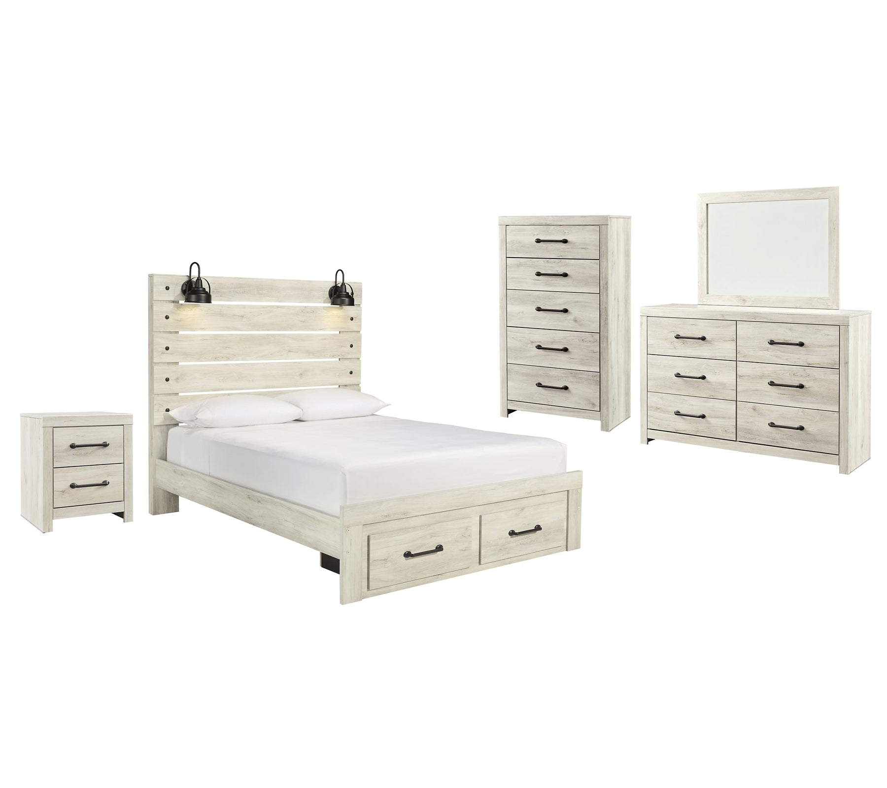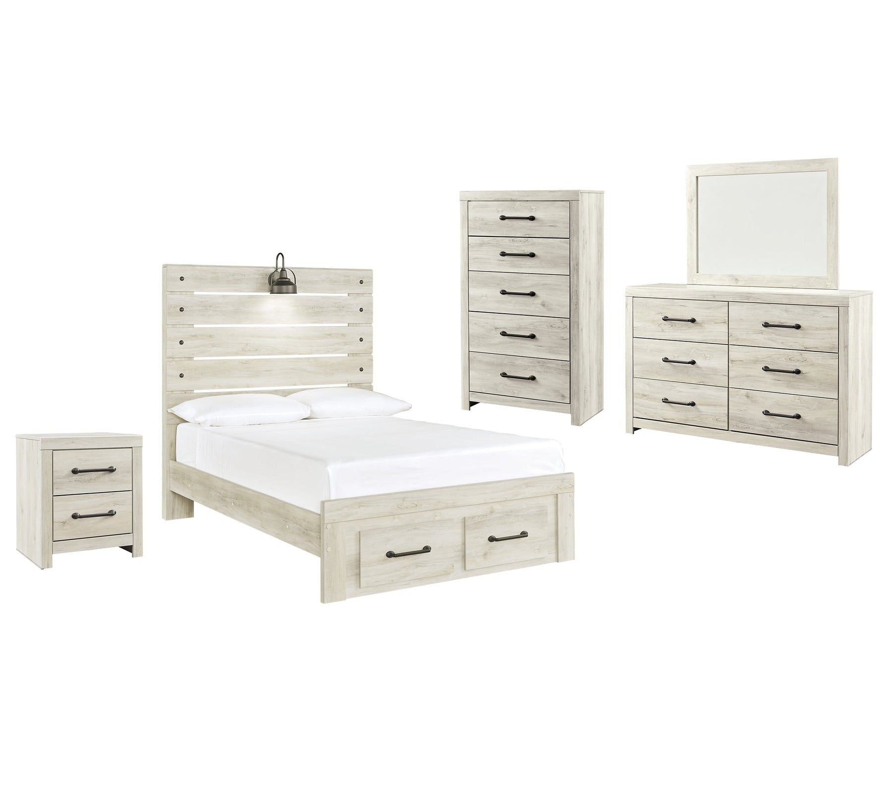 | Details | B192-46: Made of engineered wood (MDF/particleboard) and decorative laminate, Wispy white finish over replicated oak grain with authentic touch, Large-scale hardware with dark finish, 5 smooth-gliding drawers, Drawer interiors are lined with a faux linen laminate for a clean, finished look, Safety is a top priority, clothing storage units are designed to meet the most current standard for stability, ASTM F 2057 (ASTM International), Drawers extend out to accommodate maximum access to drawer interior while maintaining safety, B192-92: Made of engineered wood (MDF/particleboard) and decorative laminate, Wispy white finish over replicated oak grain with authentic touch, Large-scale hardware with dark finish, 2 smooth-gliding drawers, Drawers lined with faux linen laminate for finished aesthetic, 2 slim-profile USB charging stations, Power cord included; UL Listed, B192B1: Includes dresser with mirror, Made of engineered wood (MDF/particleboard) and decorative laminate, Wispy white finish over replicated oak grain with authentic touch, 6 smooth-gliding drawers, Drawer interiors are lined with a faux linen laminate for a clean, finished look, Large-scale hardware with dark finish, Mirror attaches to back of dresser, Assembly required, B192B8: Includes headboard, footboard and rails, Made of engineered wood (MDF/particleboard) and decorative laminate, Wispy white finish over replicated oak grain with authentic touch, Large-scale hardware with dark finish, 2 decorative sconce lights, LED with 3 AA batteries, 2 smooth-gliding storage drawers, 2 slim-profile USB charging ports, Power cord included; UL-listed, Foundation/box spring required, sold separately, Mattress available, sold separately, Assembly required, Bed is not compatible with an adjustable base, | |