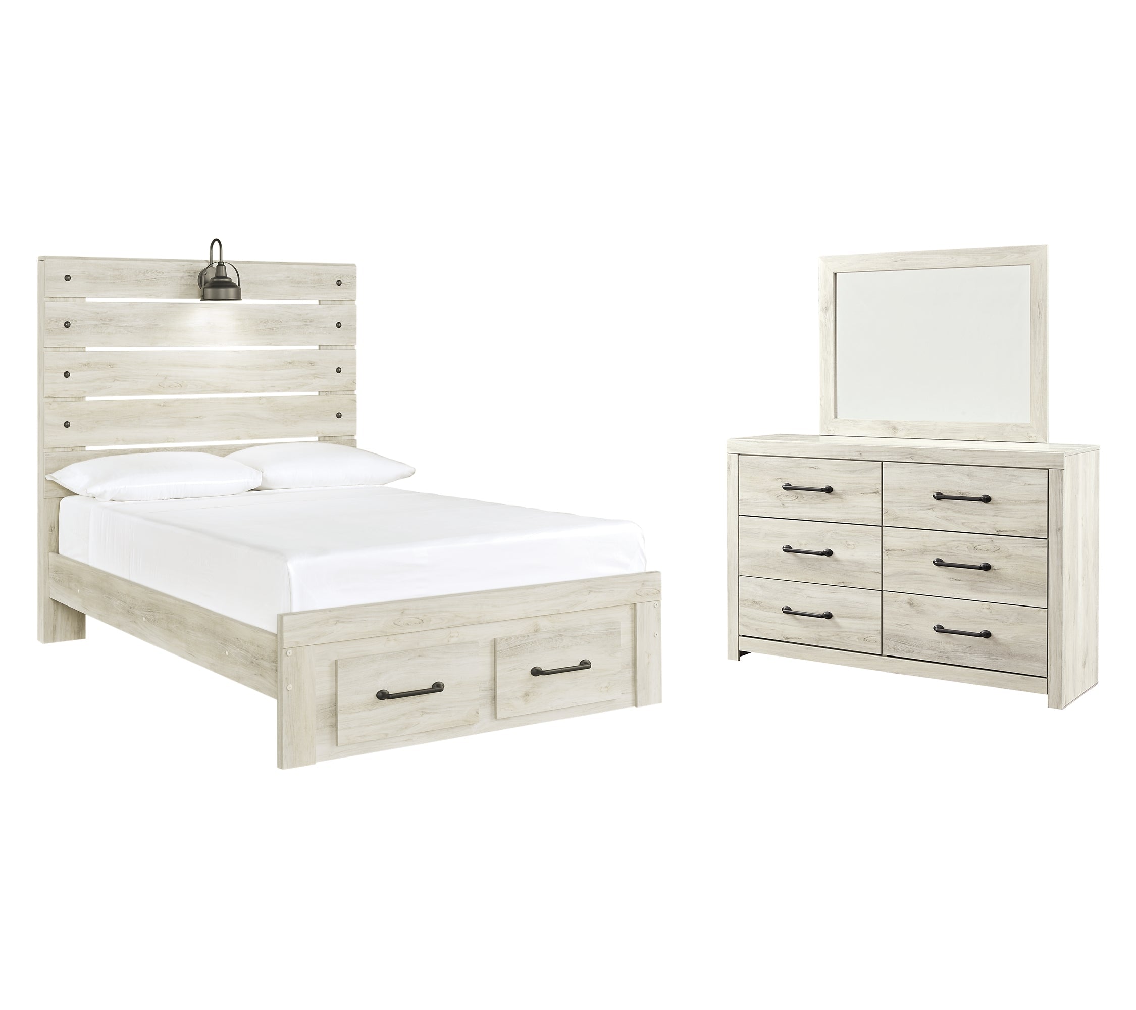 Cambeck Full Panel Bed with 2 Storage Drawers with Mirrored Dresser