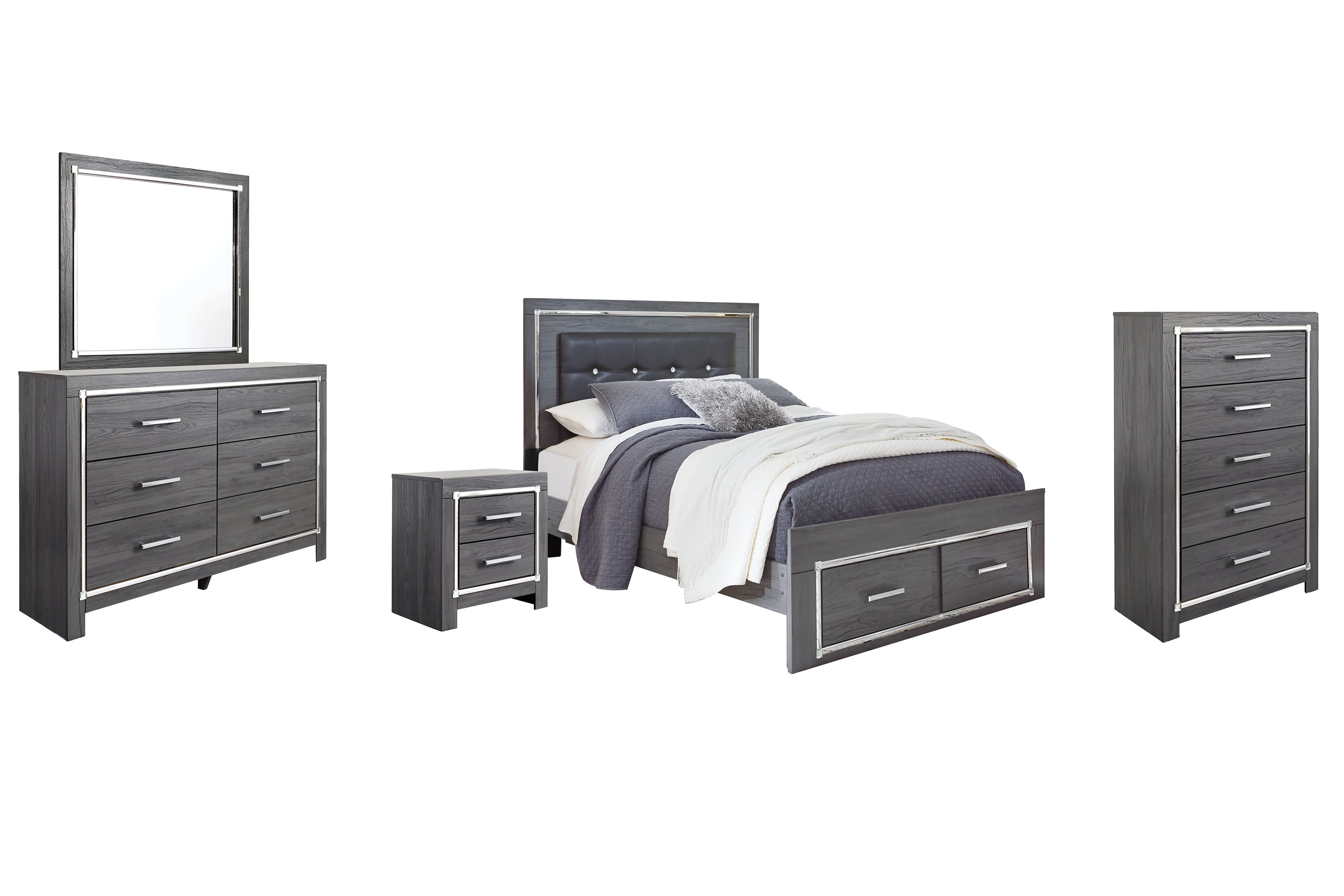 Lodanna Panel Bed With 2 Storage Drawers With Mirrored Dresser