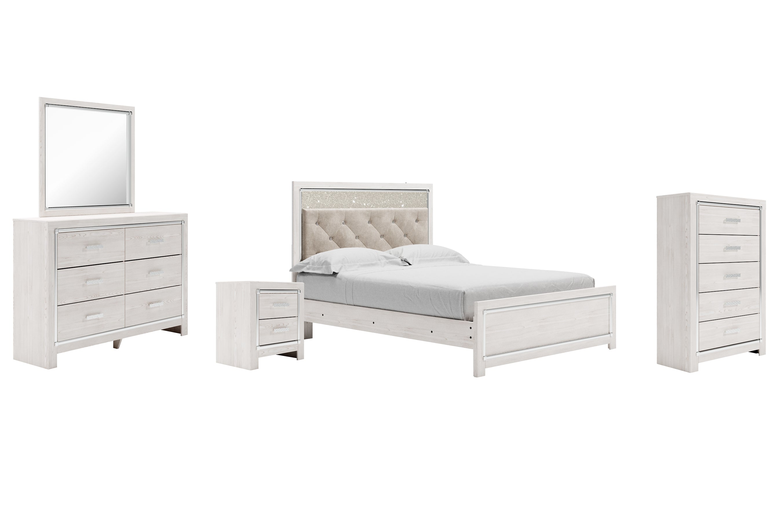 Altyra King Panel Bookcase Bed with Mirrored Dresser, Chest and Nightstand