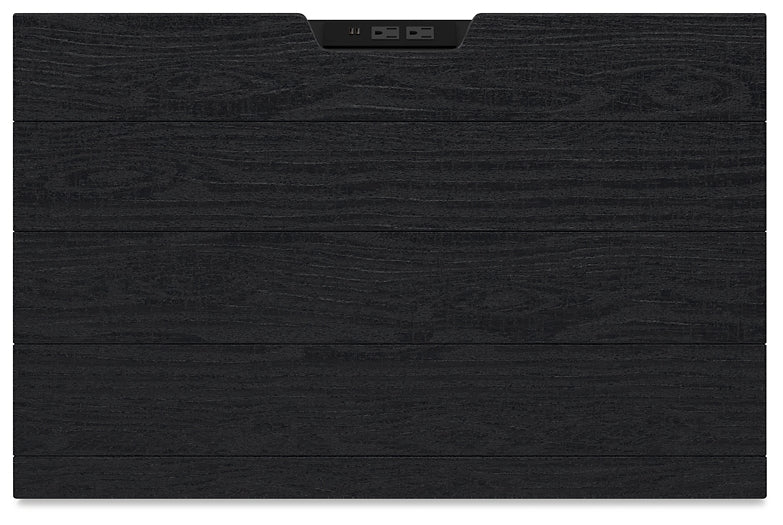 Details B768B4: Includes headboard, footboard and rails, Made with pine solids, veneers and engineered wood substrate, Textured black wood stain with waxy topcoat, Extra wide rails for a bench-like wrap around, Foundation/box spring required, sold separately, Mattress available, sold separately, Assembly required, B768B1: Includes dresser and mirror, Made with pine solids, veneers and engineered wood substrate, Textured black wood stain with waxy topcoat, Hardware-less design, 6 drawers with fully finished interiors, dovetail construction and ball-bearing side glides (top drawers felt lined), Mirror attaches to back of dresser, B768-92: Made with pine solids, veneers and engineered wood substrate, Textured black wood stain with waxy topcoat, Hardware-less design, 2 drawers with fully finished interiors, dovetail construction and ball-bearing side glides, 110V power supply with dual USB charging ports, Power cord included; UL Listed,