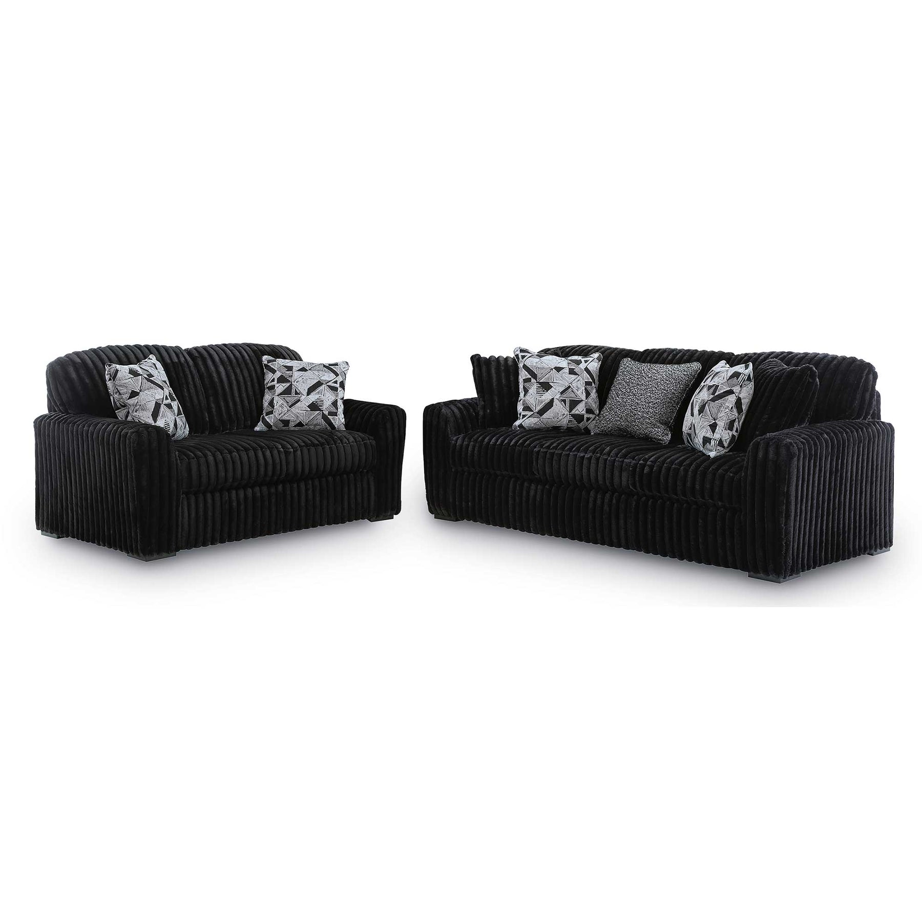 Transform your living room into the ultimate cozy retreat with the Midnight-Madness Sofa and Loveseat Set, wrapped in luxuriously soft jumbo corduroy. This onyx black living room set is perfect for family movie nights, entertaining friends, or simply unwinding after a long day. The exceptionally plush cushions deliver pure indulgence for homes throughout Milwaukee and Southeast Wisconsin.