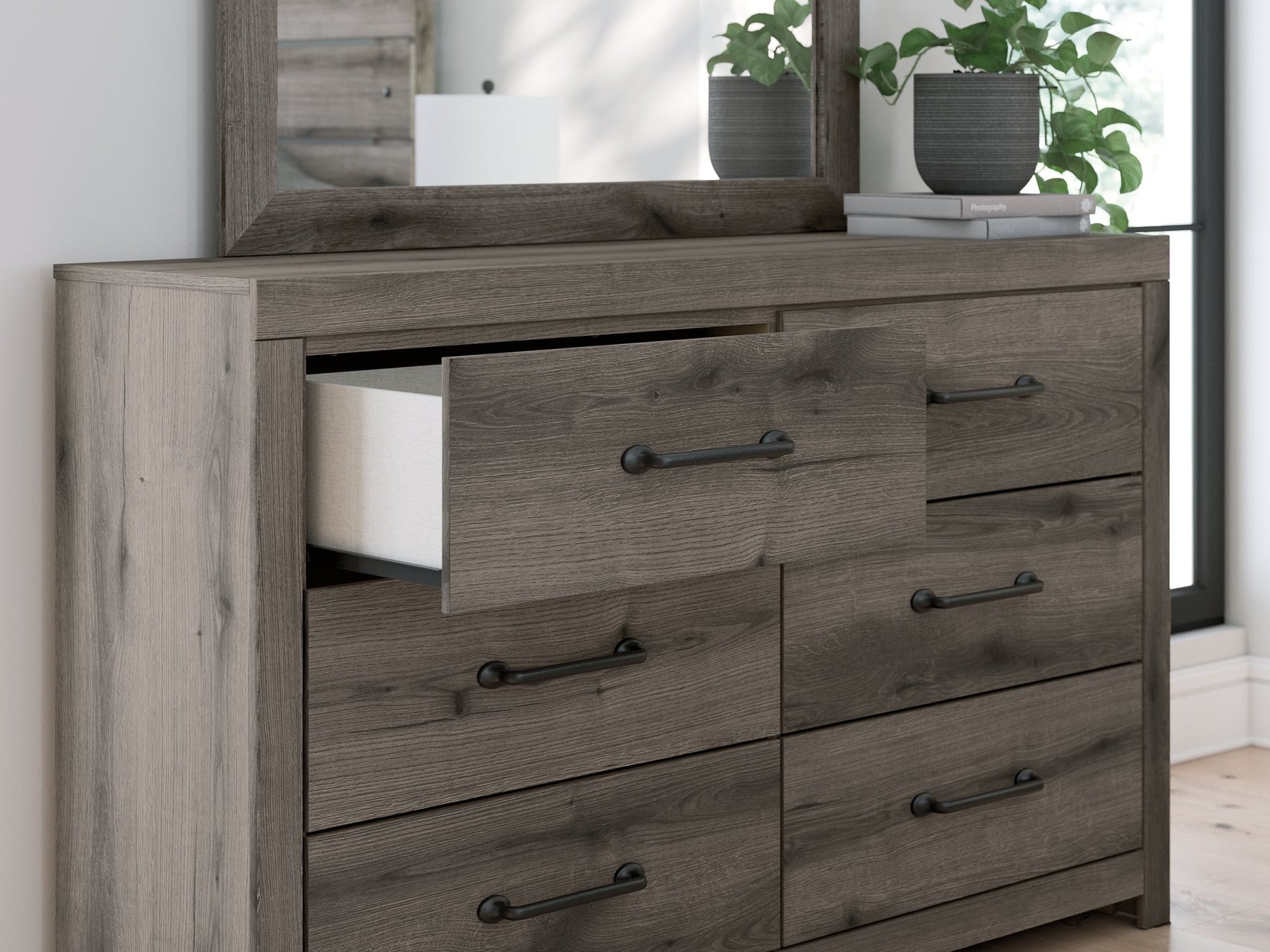 Details PCB2405B2: Includes panel headboard/footboard and rails, Made with engineered wood (MDF/particleboard/plywood) and decorative laminate for the right balance of affordability and durability , Weathered gray finish over replicated oak grain, Decorative laminate replicates natural or man-made material surfaces with consistent color, pattern and texture, Foundation/box spring required, sold separately , Mattress available, sold separately, Minor assembly required, PCB2405B1: Includes dresser and mirror, Made with engineered wood (MDF/particleboard/plywood) and decorative laminate for the right balance of affordability and durability , Weathered gray finish over replicated oak grain, Decorative laminate replicates natural or man-made material surfaces with consistent color, pattern and texture, Large-scale dark colored handles, 6 smooth-gliding drawers, Drawer interiors are lined with a faux linen laminate for a clean, finished look , Safety is a top priority, clothing storage units are designed to meet the most current standard for stability, ASTM F 2057 (ASTM International), Drawers extend out to accommodate maximum access to drawer interior while maintaining safety, Mirror attaches to back of dresser; can also be mounted on wall horizontally or vertically , Minor assembly required, PCB2405-46: Made with engineered wood (MDF/particleboard/plywood) and decorative laminate for the right balance of affordability and durability, Weathered gray finish over replicated oak grain, Decorative laminate replicates natural or man-made material surfaces with consistent color, pattern and texture, Large-scale dark colored handles, 5 smooth-gliding drawers, Drawer interiors are lined with a faux linen laminate for a clean, finished look, Safety is a top priority, clothing storage units are designed to meet the most current standard for stability, ASTM F 2057 (ASTM International), Drawers extend out to accommodate maximum access to drawer interior while maintaining safety, Minor assembly required, PCB2405-92: Made with engineered wood (MDF/particleboard/plywood) and decorative laminate for the right balance of affordability and durability, Weathered gray finish over replicated oak wood grain, Decorative laminate replicates natural or man-made material surfaces with consistent color, pattern and texture, Large-scale dark colored handles, 2 smooth-gliding drawers, Drawer interiors are lined with a faux linen laminate for a clean, finished look, 2 slim-profile USB-C charging ports, Power cord included; UL Listed, Minor assembly required,