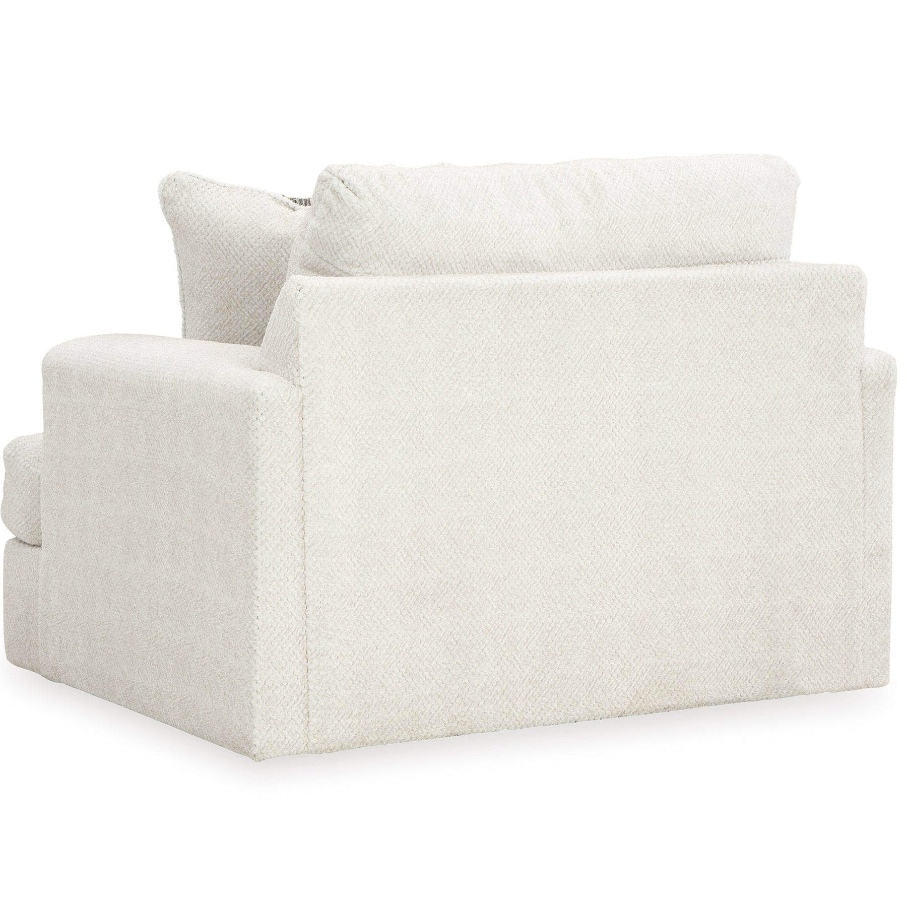 Craving casual refinement? This oversized chair has you covered. The decidedly contemporary frame cradles sizable cushions in an ultra-soft neutral hue, lightening the mood in your living room with simple style and everyday comfort. A geometric accent pillow perfects the chic-meets-cozy vibe.