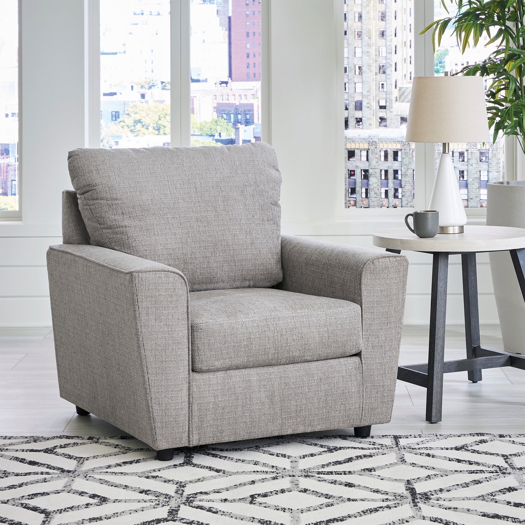 What’s new in neutrals? Shades of gray, of course. Embrace this sophisticated design trend with this gorgeous chair, which offers a clean-lined, contemporary style at a comfortably cool price. Sure to lift your spirits, the plush chenille fabric is fabulously neutral. Contemporary flared arms give it a distinctive flair.