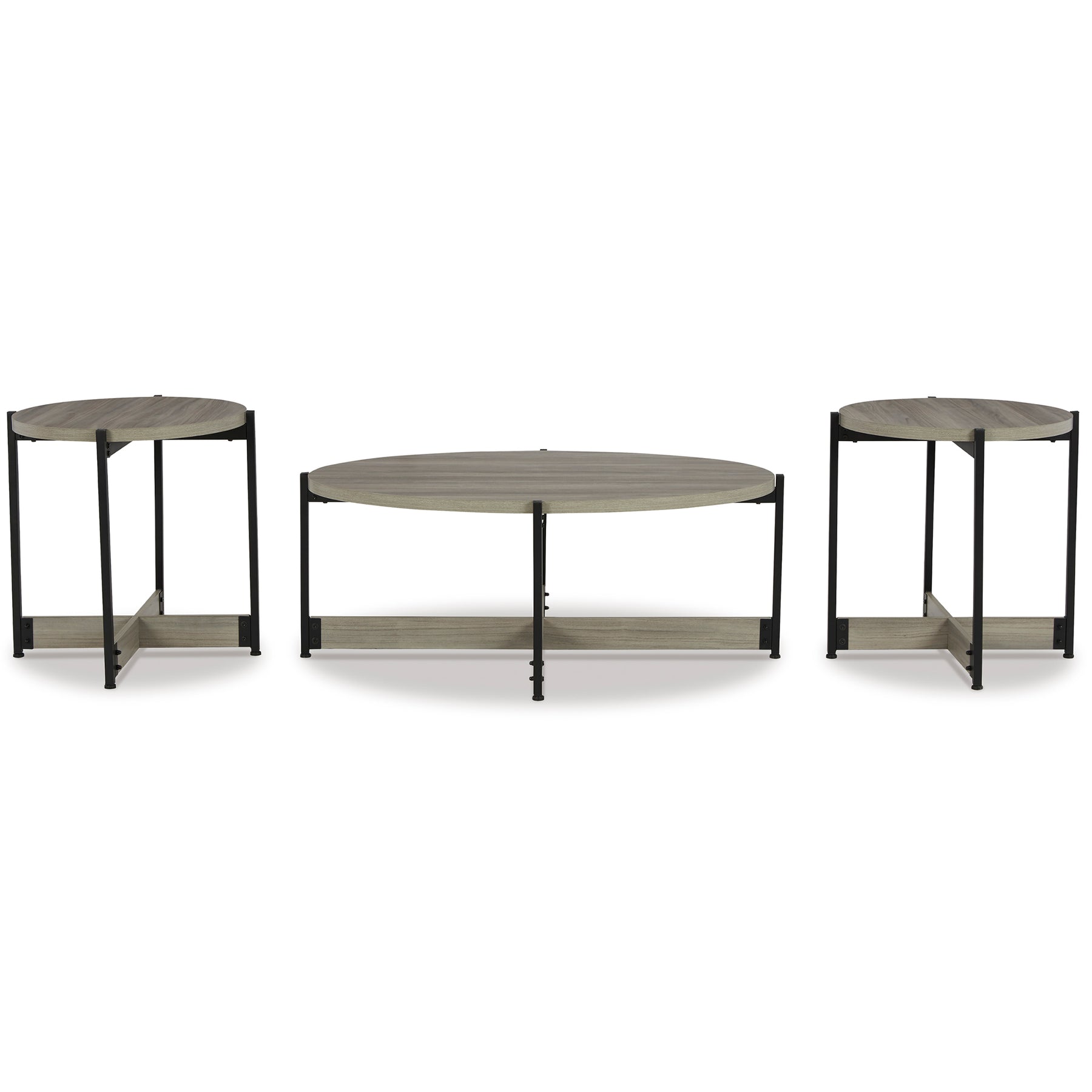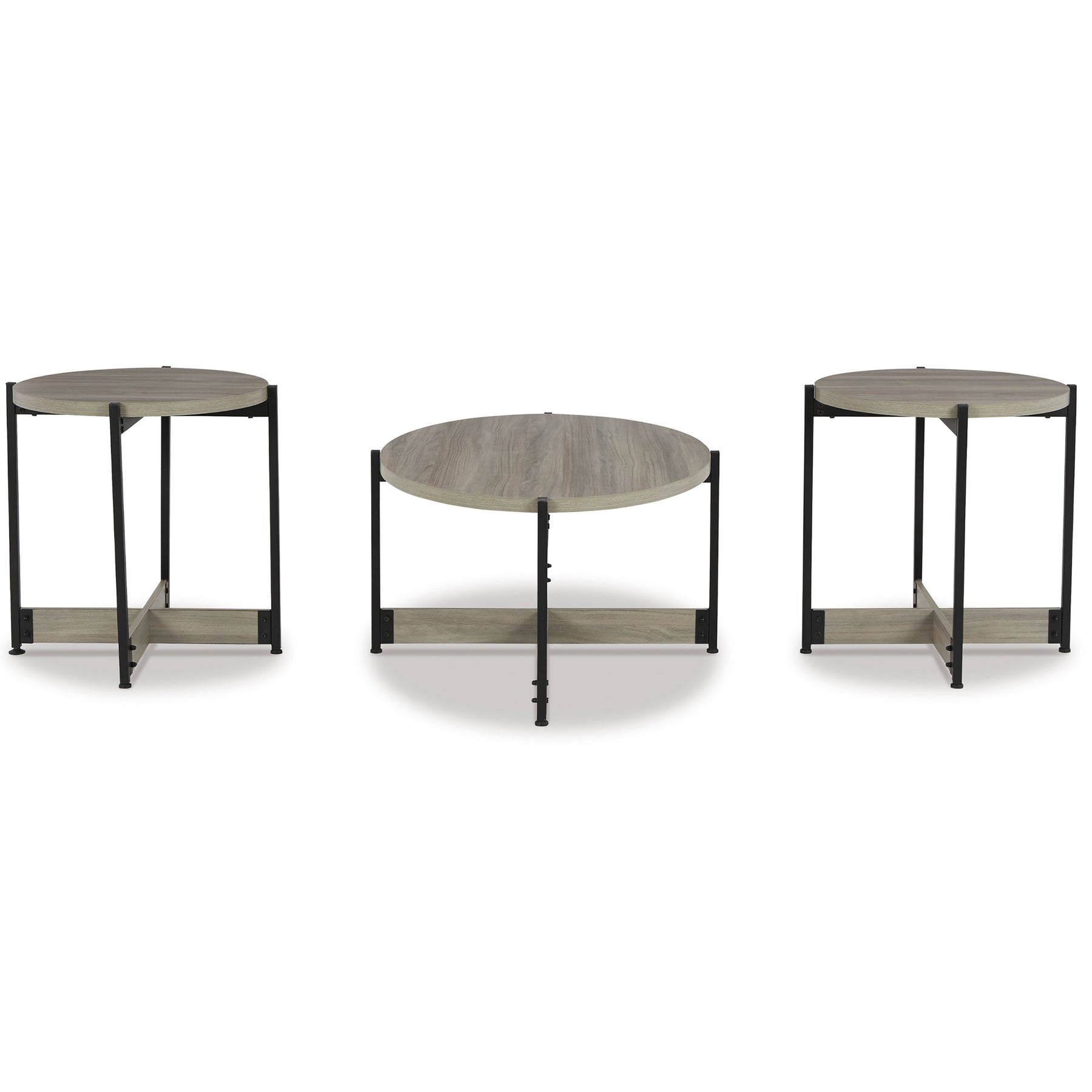 Details | Includes coffee table and 2 end tables, Made with wood, engineered wood and durable melamine laminate, Replicated barn wood gray finish, Metal legs with matte black powder coated finish, MEGA TUFF™ melamine surfaces are made of easy-clean melamine which is heat-, scratch-, water- and stain-resistant, Assembly required | |
