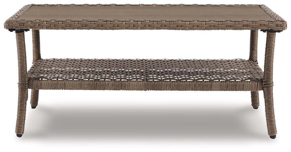 Details | All-weather resin wicker handwoven over rust-free aluminum frame, Wood-look resin top with plank effect, Stainless steel hardware, Designed to withstand the harsh elements of the outdoors, Light brown tone, Fixed shelf, Assembly required | |
