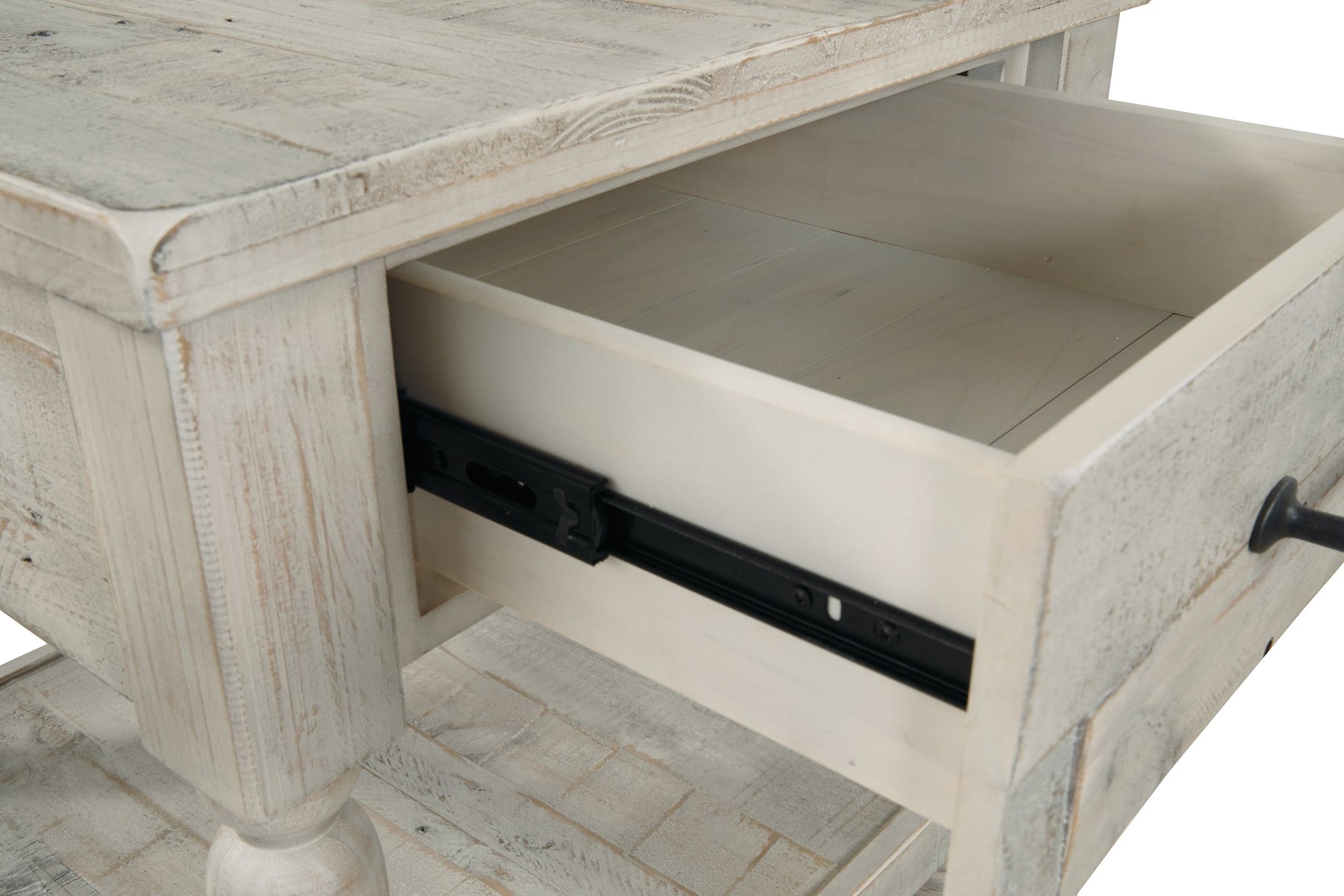 Details | Includes coffee table and end table, Made of solid wood, Coffee table with 2 smooth-gliding drawers, End table with smooth-gliding drawer, Bronze-tone hardware, Plank effect, Bottom shelf, Assembly required | |
