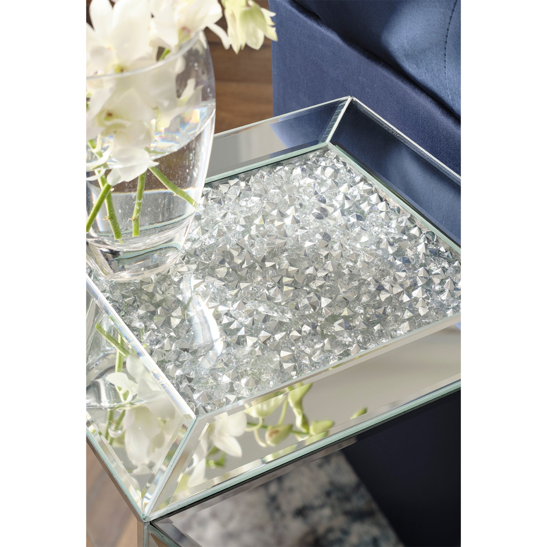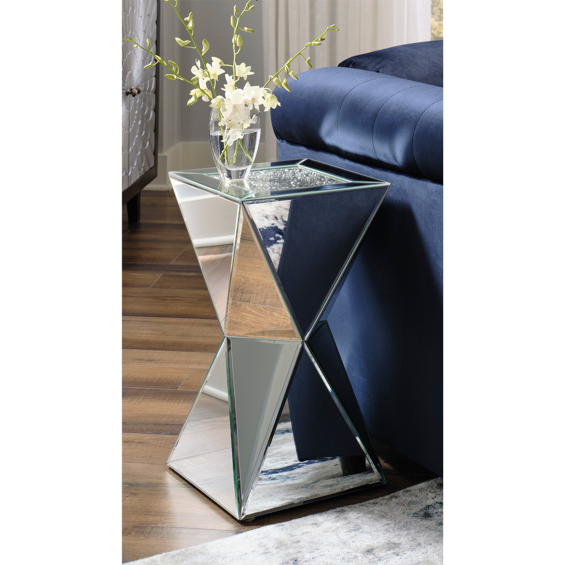 Details | Made of beveled mirror, engineered wood, Metallic bead top | |
