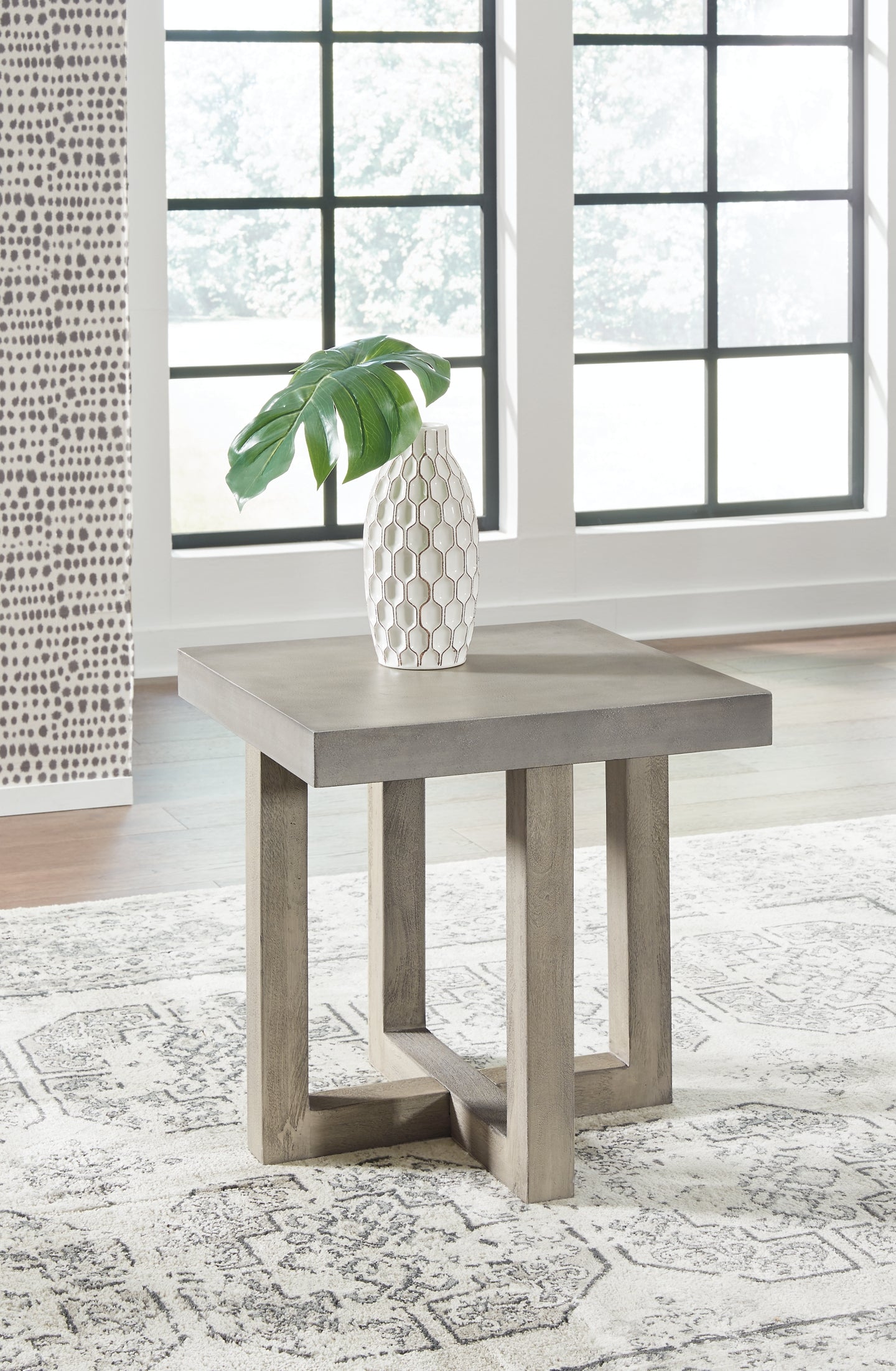 | Details | Made of mango wood and engineered wood, Hand-applied faux concrete finished top, Gray washed wood base, Assembly required | |