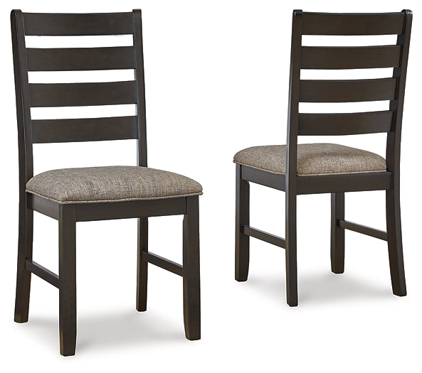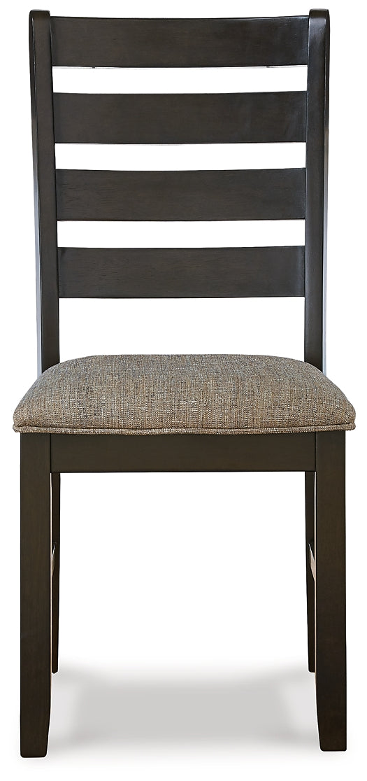 Details | Made with wood, birch veneer and engineered wood, Brown finish, Slat-back styling, Cushioned seat for comfort, Light chestnut brown polyester upholstery, Spot clean only, Assembly required | |