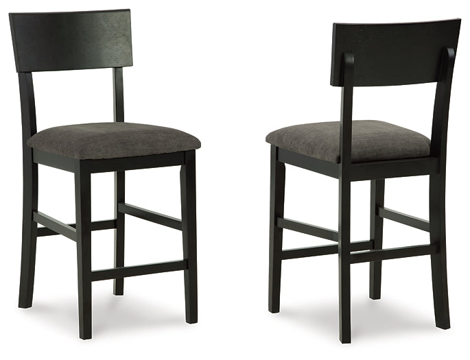 This set of 2 bar stools is urban contemporary style at its finest. Clean and modern, the black hardwood chair frame and bentwood back provide a cool contrast to charcoal gray woven upholstery. You and your guests are sure to love this counter height stool's soulful simplicity.