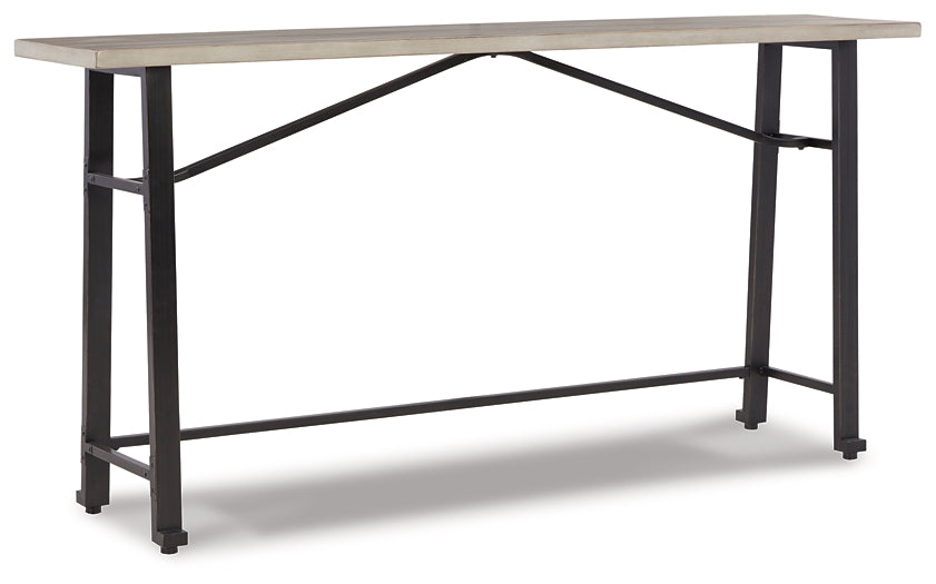 Details Includes long counter height table and 2 bar stools, Made of engineered wood and acacia veneer, Distressed whitewash finish, Metal frame with black finish, Bar stools with adjustable height , Swivel seat, Footrest for added support, Assembly required