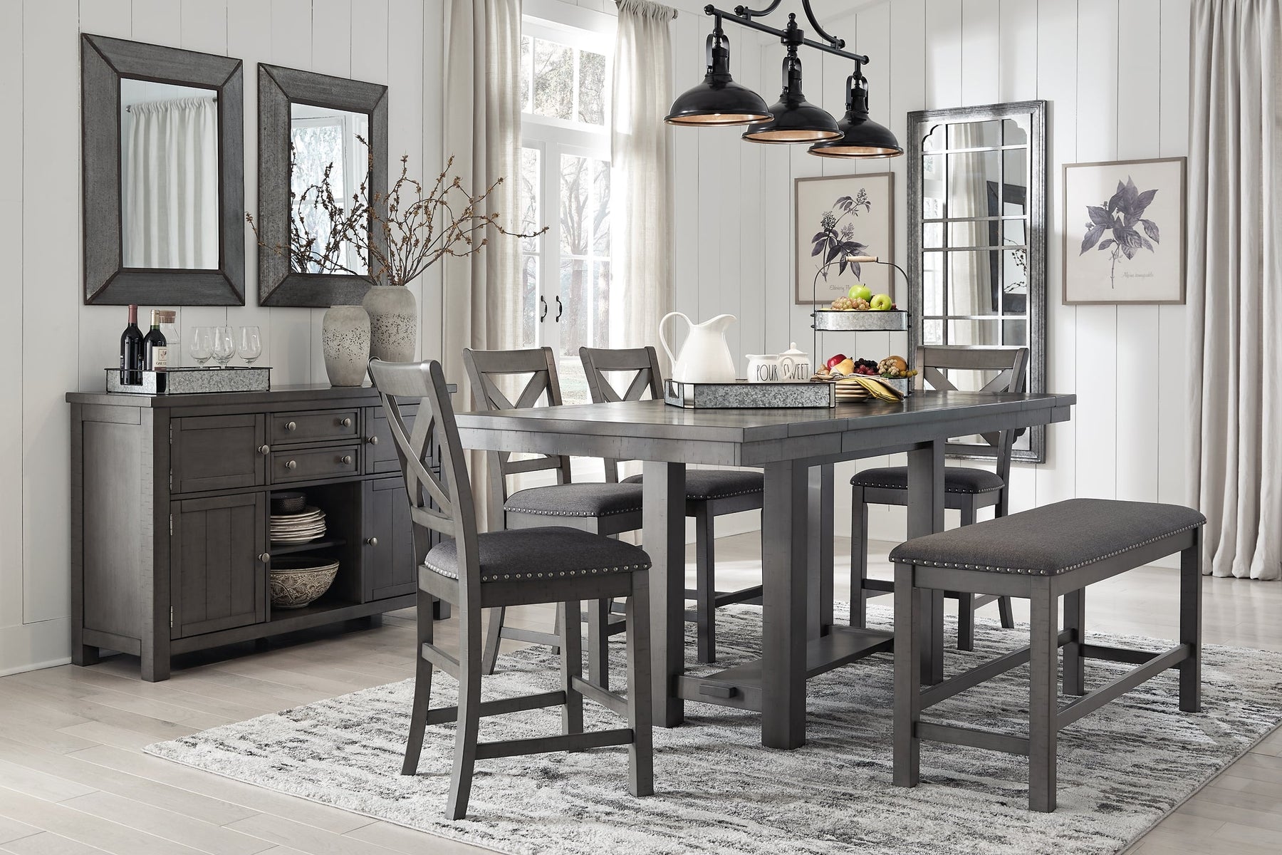 Myshanna Counter Height Dining Table and 4 Barstools and Bench with St