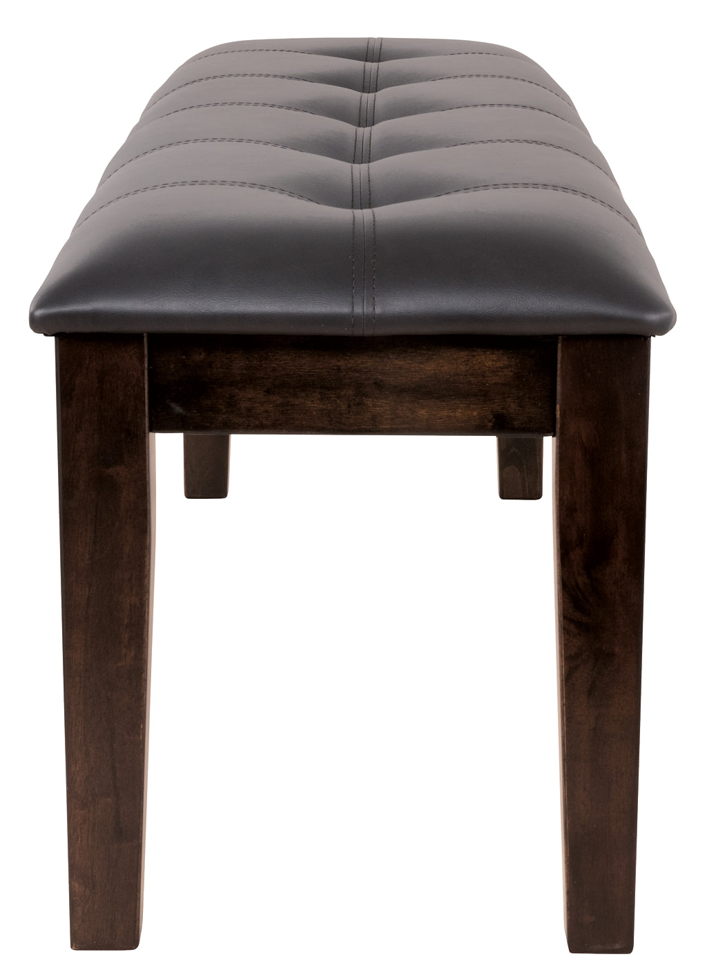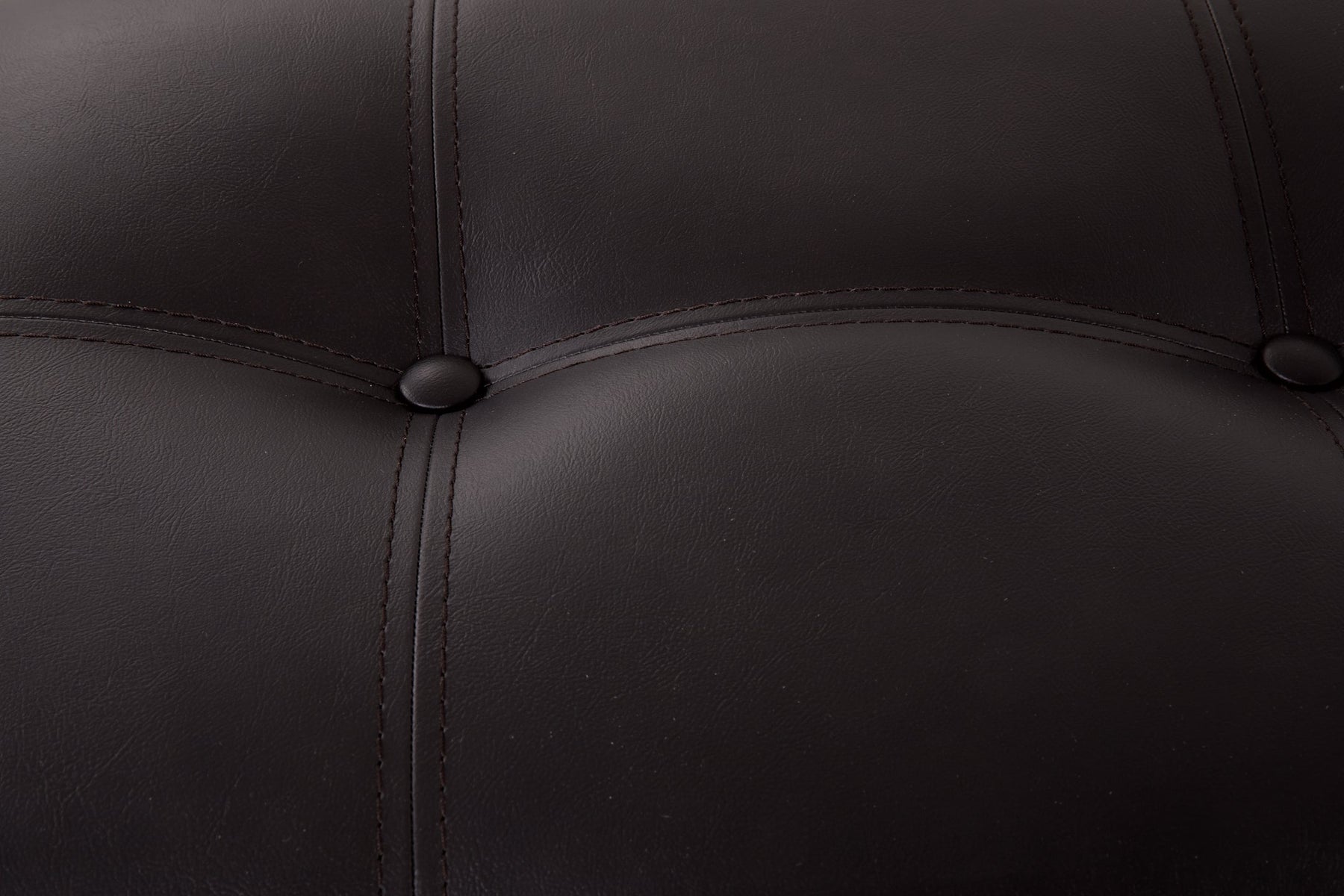 Details | Wood legs, Faux leather upholstery, Cushioned seat, Button tufting | |