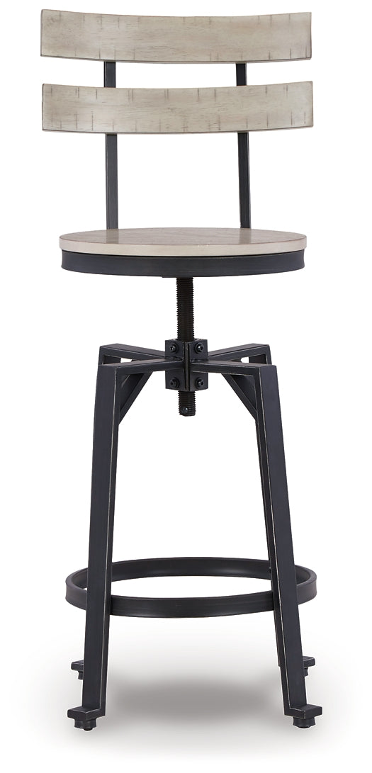 Details | Made of acacia veneer and engineered wood, Distressed whitewash finish, Metal frame with black finish, Adjustable height, Swivel seat, Footrest, Assembly required | |