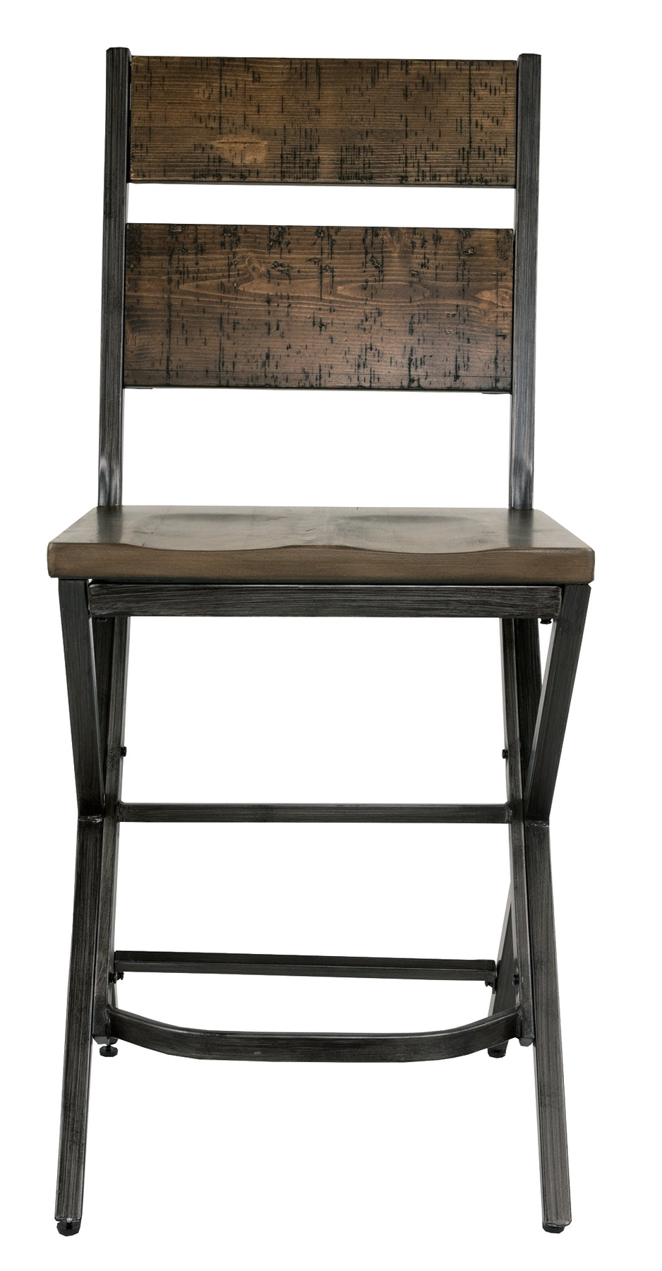 This timeless counter height bar stool elevates industrial-chic style in such a tantalizing way. It might look naturally weatherworn, but the replicated design provides the strength and durability of modern materials. Its smaller scale is ideally suited for high-style homes that are short on space.