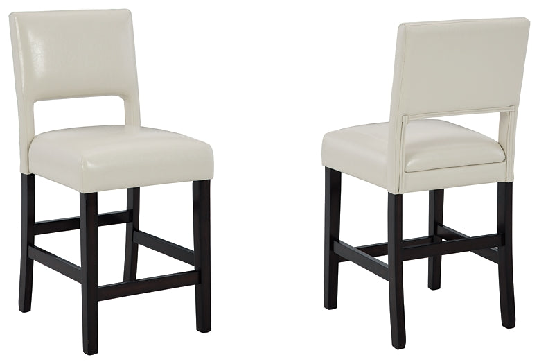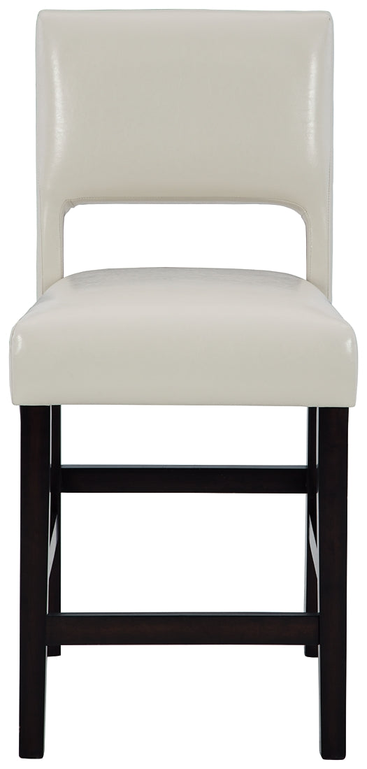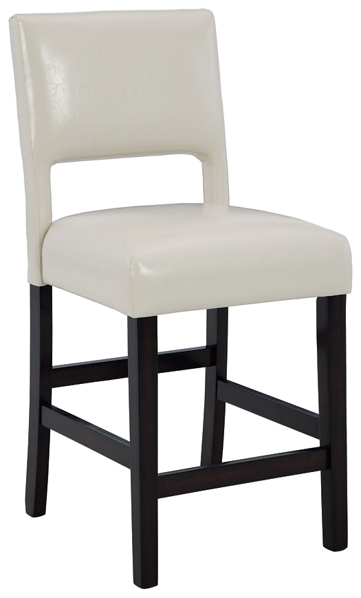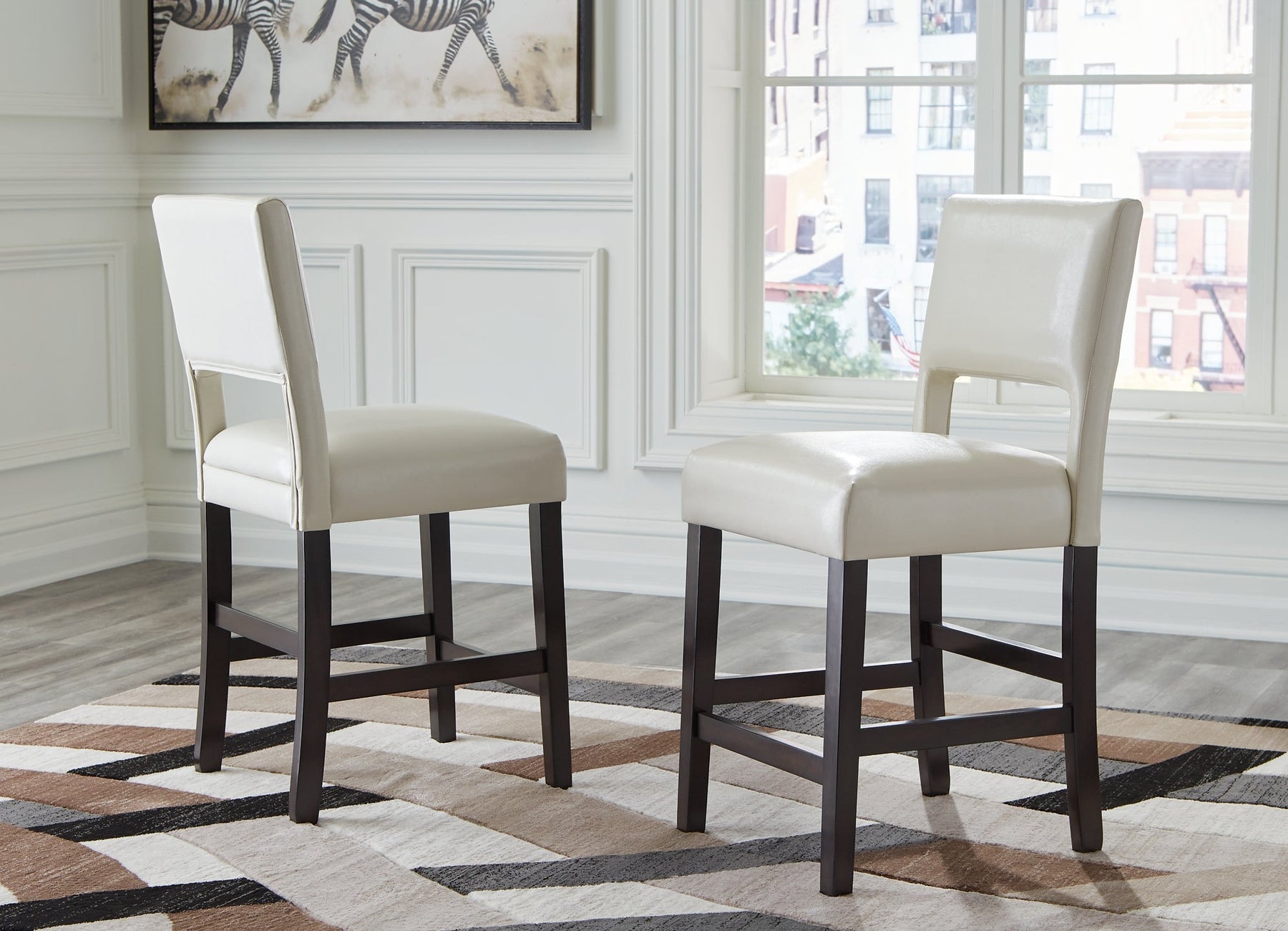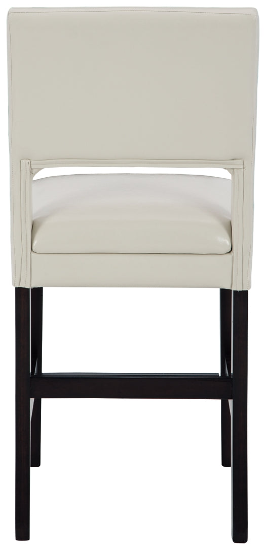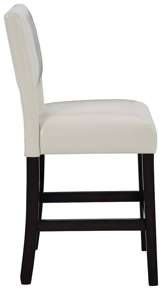 Details | Wood frame, Dark brown wood-tone finish, Foam cushioned seat with ivory faux leather upholstery, Assembly required | |