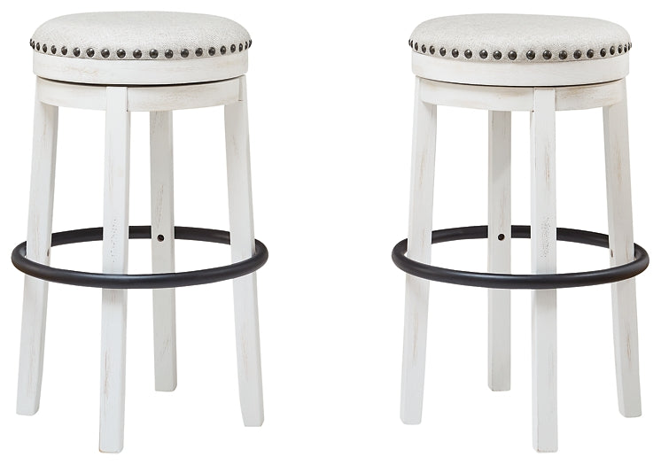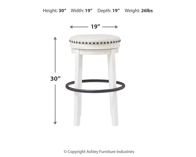 Details | Made of wood, Round metal footrest with black finish, Vintage white finish, Cushioned seat with beige woven fabric upholstery, 360-degree swivel, Nailhead trim detail, Assembly required | |