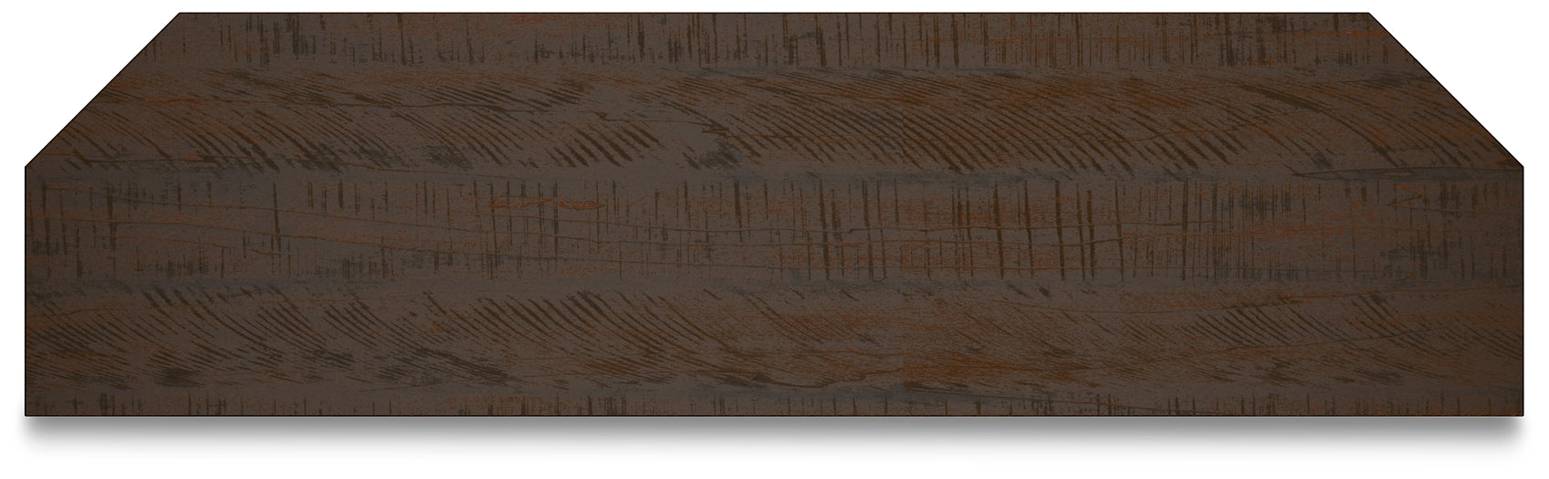 | Details | Made with decorative paper laminate and engineered wood substrate, Replicated burnt umber rustic wood grain, 2 shelves, Cutouts for wire management, Assembly required | |
