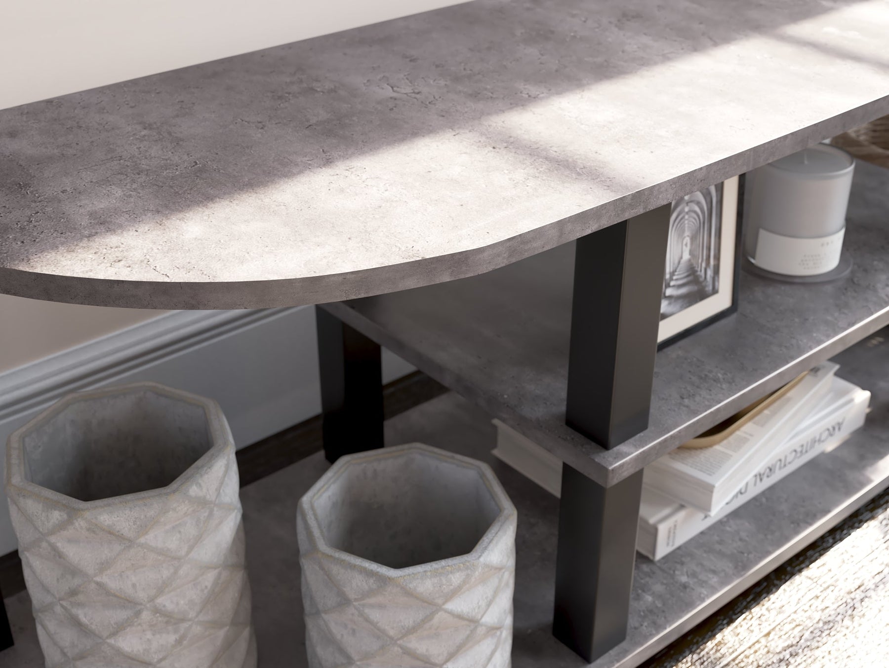 | Details | Made of faux cement decorative laminate and engineered wood, Furniture grade plastic shelf supports with a contrasting satin black finish, Perfect compact design for use in smaller spaces or as a gaming setup, Assembly required | |