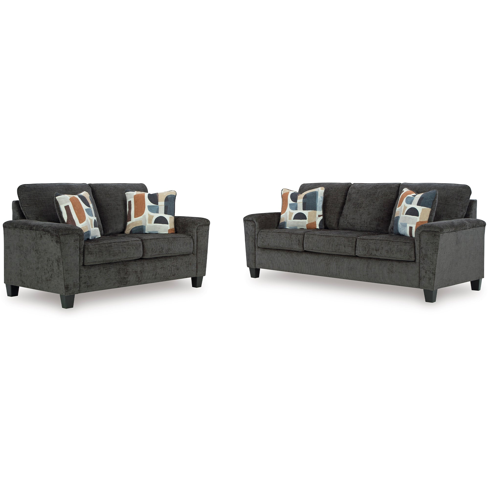 There’s something about this loveseat that’s so easy to appreciate. Maybe it’s the plush upholstery and soothing tone, eager to support your quest for total relaxation. Perhaps it's the modern flair of its simple lines, tapered legs and abstract-patterned pillows. Whatever it is that appeals to you, this is a piece you're gonna love.