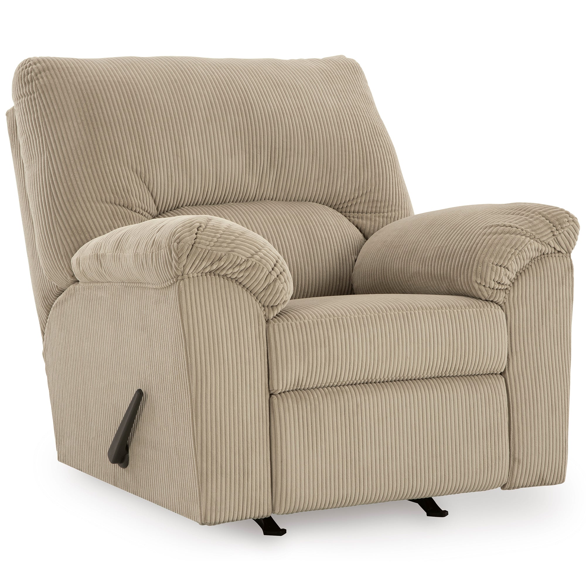 • Stylish Design: The sand-colored polyester upholstery complements any decor, while the exposed feet with a faux wood finish add a touch of sophistication.
