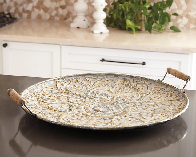 Details | Made of metal with antiqued goldtone finish, Wood handles, Clean with a soft, dry cloth | |