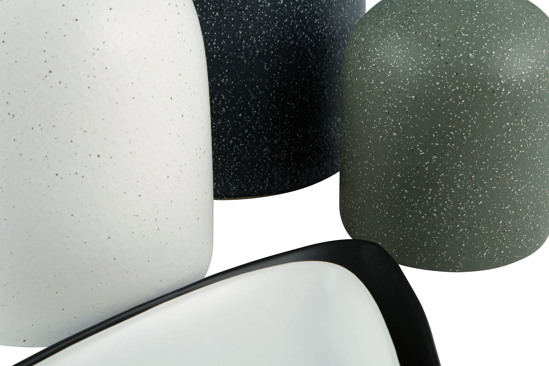 Details | Includes 2 trays and 3 vases, Made of ceramic, Navy, green, black and white matte glazed finish, Made for indoor/outdoor use | |