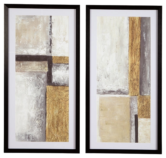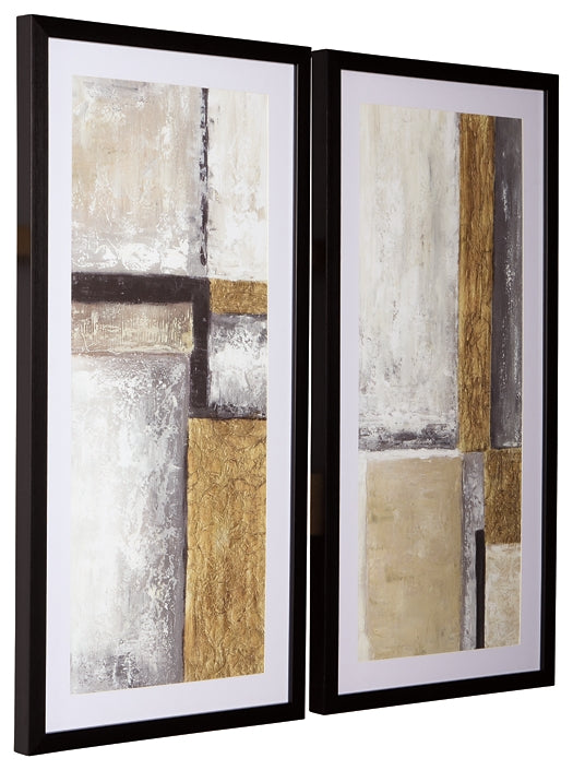 Details | Set of 2, Framed prints in shades of black, white, cream and gold, Glass front, D-ring bracket hangers, Hangs vertically or horizontally, Clean with a soft, dry cloth | |