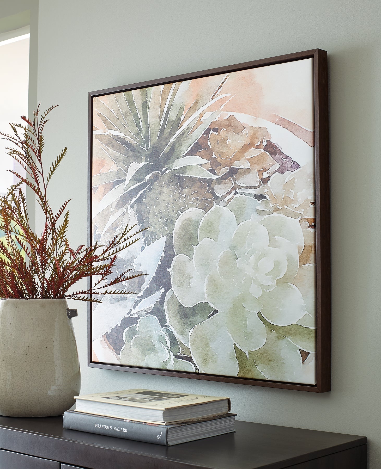 Details | Gallery wrapped canvas, Succulent design in multiple colors, D-ring hanger, Framed and ready to hang | |