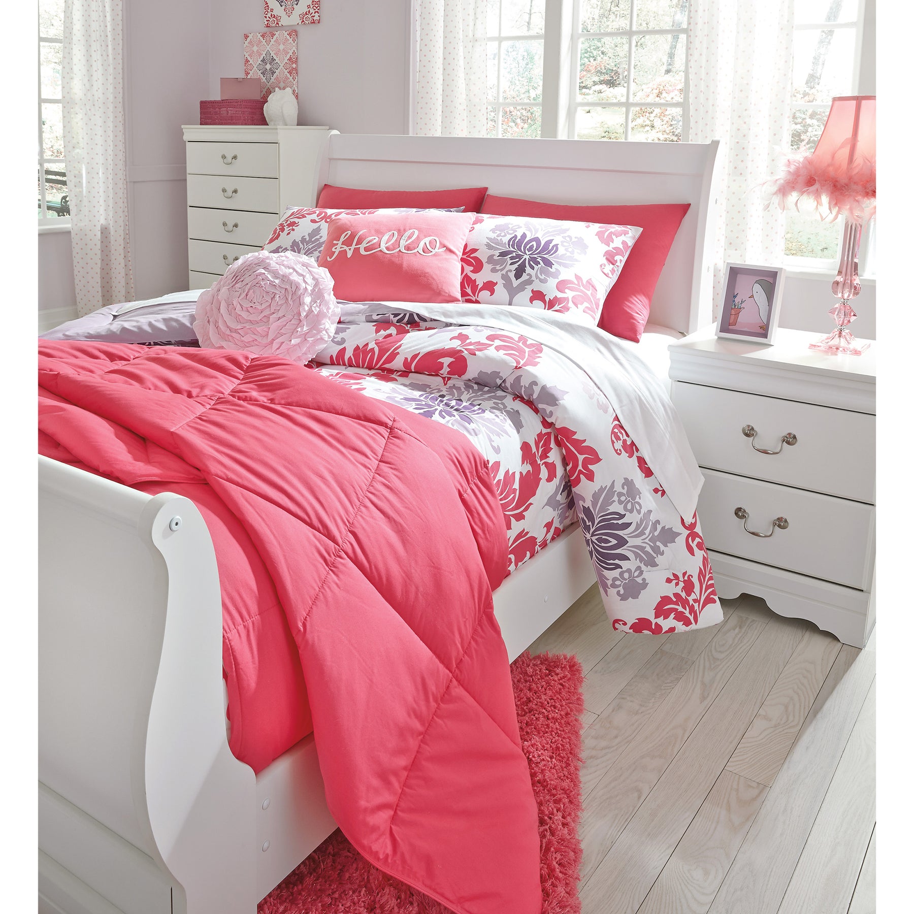 This full sleigh bed's crisp cottage white gives traditional Louis Philippe profiling a delightful style awakening. The look is timeless. The feel? Right at home. Mattress and foundation/box spring available, sold separately.