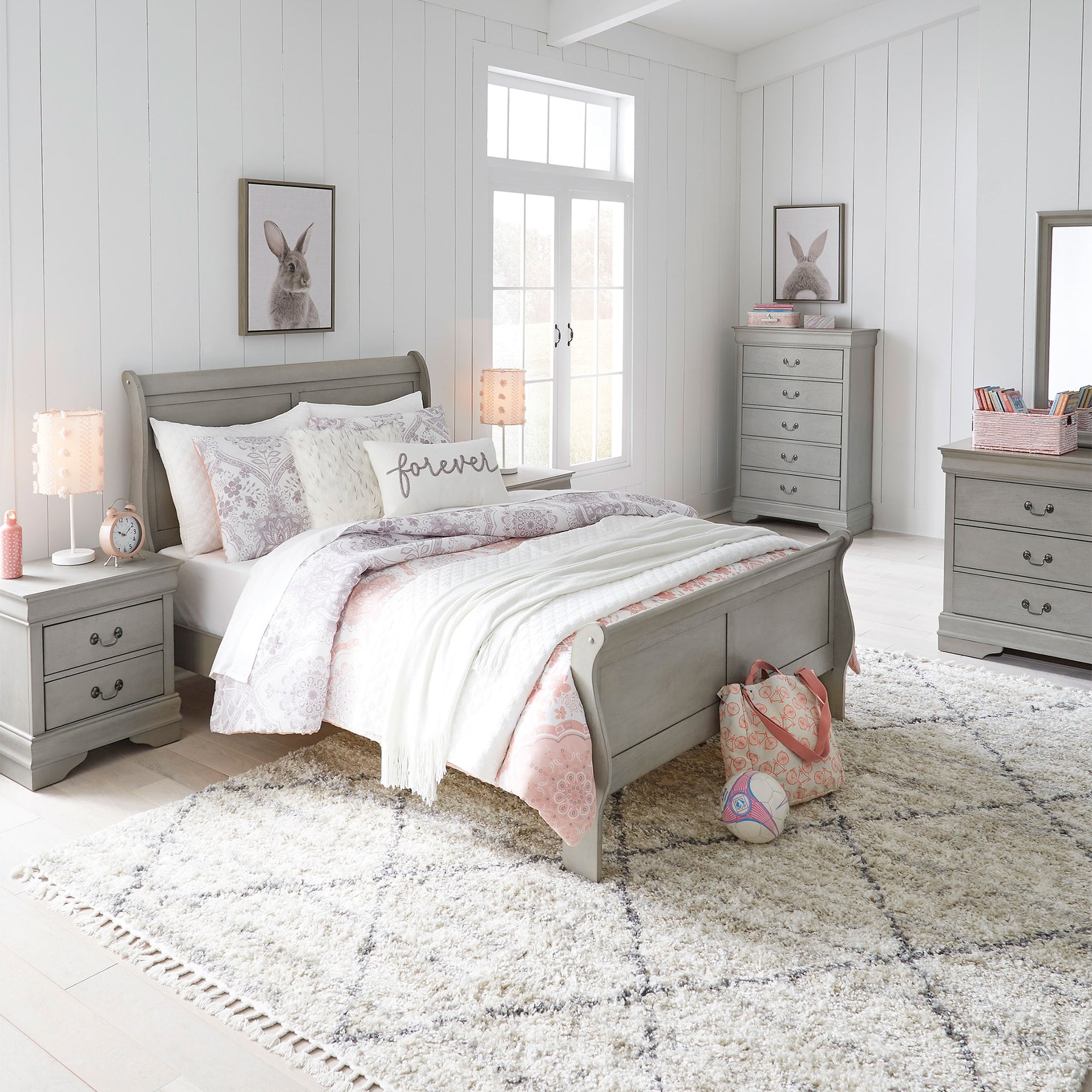 Ageless elegance isn’t far from reach with this bedroom package. The set’s trend-right dove gray color provides a dash of modern style. The stylish sleigh bed design brings extra drama, while antiqued bronze-tone hardware creates added elegance. This tasteful set will have you sleeping and storing like royalty.