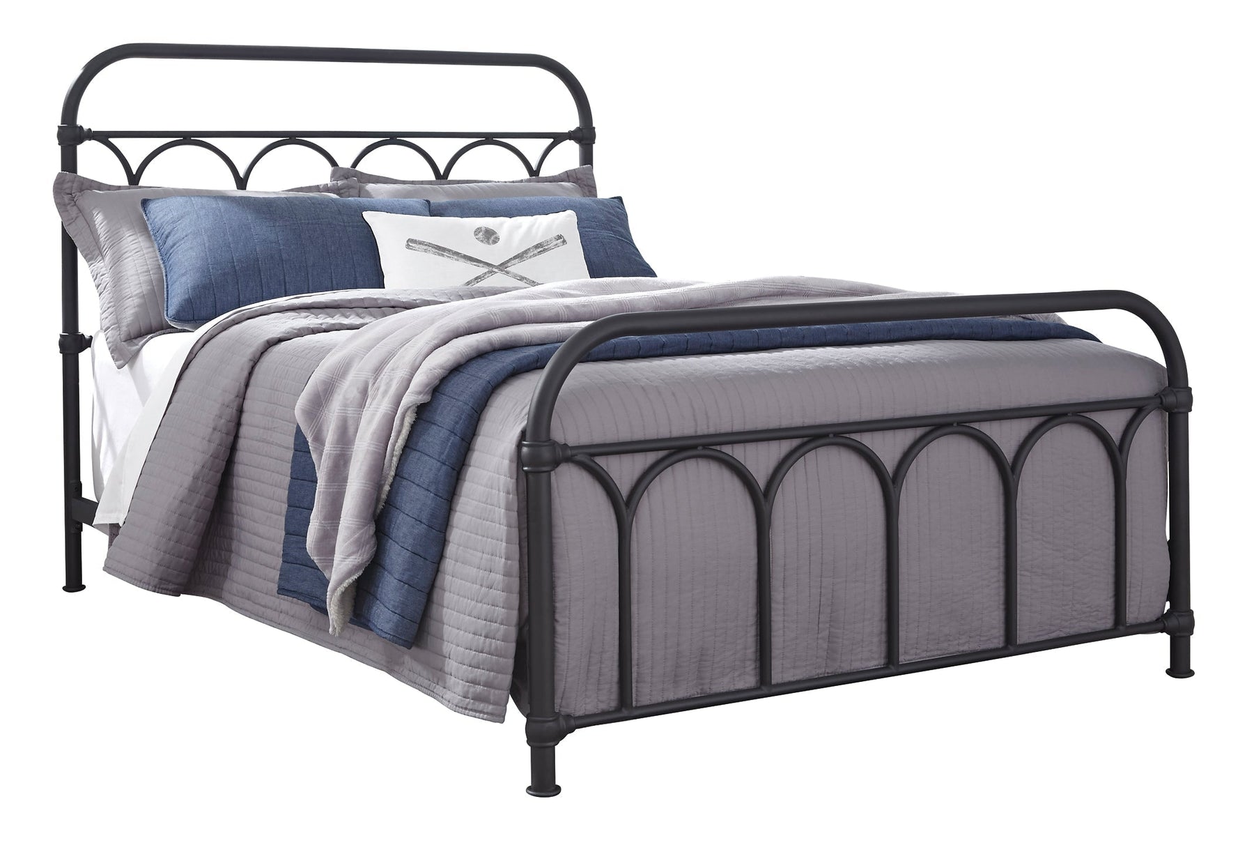 Details Made of steel, Includes headboard, footboard and rails, Powder coated finish, Moulded metal accents, Foundation/box spring required, sold separately, Mattress available, sold separately, Assembly required