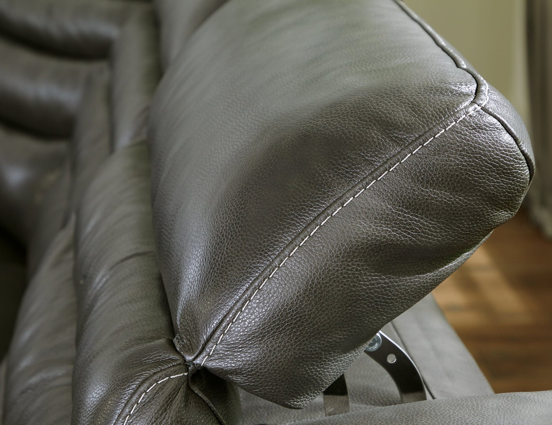 Details | Includes 5 pieces: left-arm facing power recliner, armless chair, power armless recliner, wedge and right-arm facing power recliner, "Left-arm" and "right-arm" describe the position of the arm when you face the piece, One-touch power control with adjustable positions, Easy View™ adjustable headrest and zero-draw USB port, Zero-draw technology only consumes power when the USB receptacle is in use, Corner-blocked frame with metal reinforced seat, Attached cushions, High-quality foam cushions wrapped in poly fiber, 100% top grain leather covers inside areas such as the back, seat and arm cushions; skillfully matched faux leather covers the remaining areas, Due to its natural origin, real leather can show individual characteristics such as healed scars, growth marks, grain variation and shade variation, Natural variations make each hide unique and do not detract from the wearing qualities of leather, Zero wall recliner design requires minimal space between wall and chair back, Power cord included; UL Listed | |