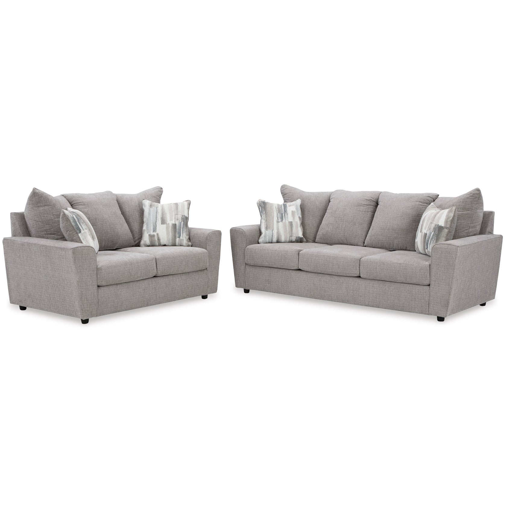 Mahoney Sofa and Loveseat set in pebble color, ideal for contemporary Milwaukee homes
