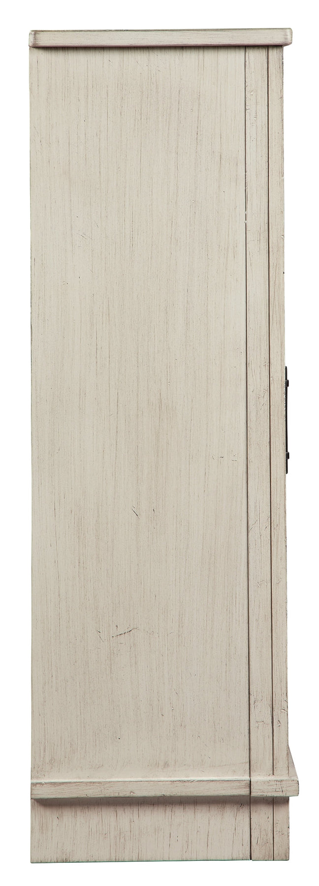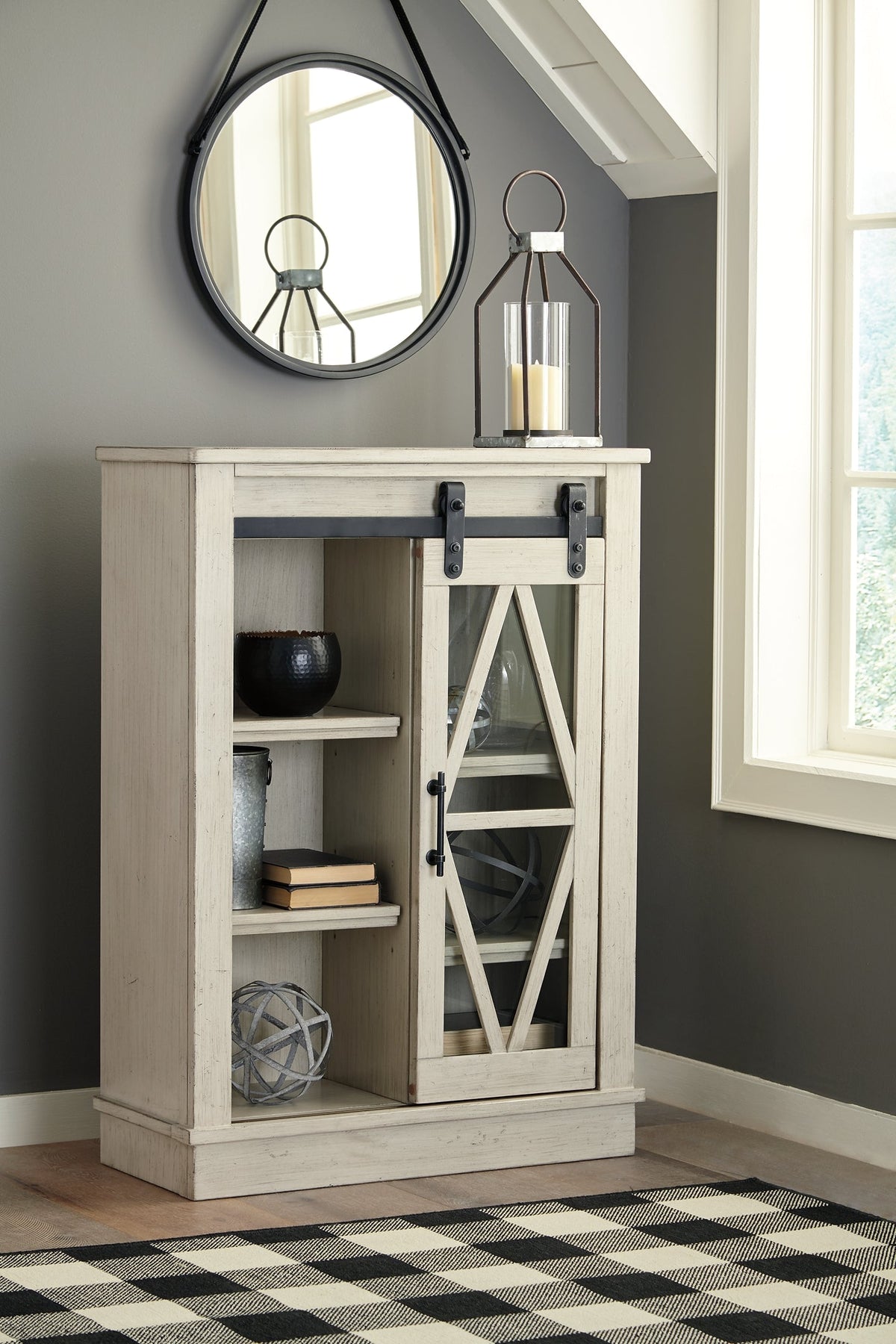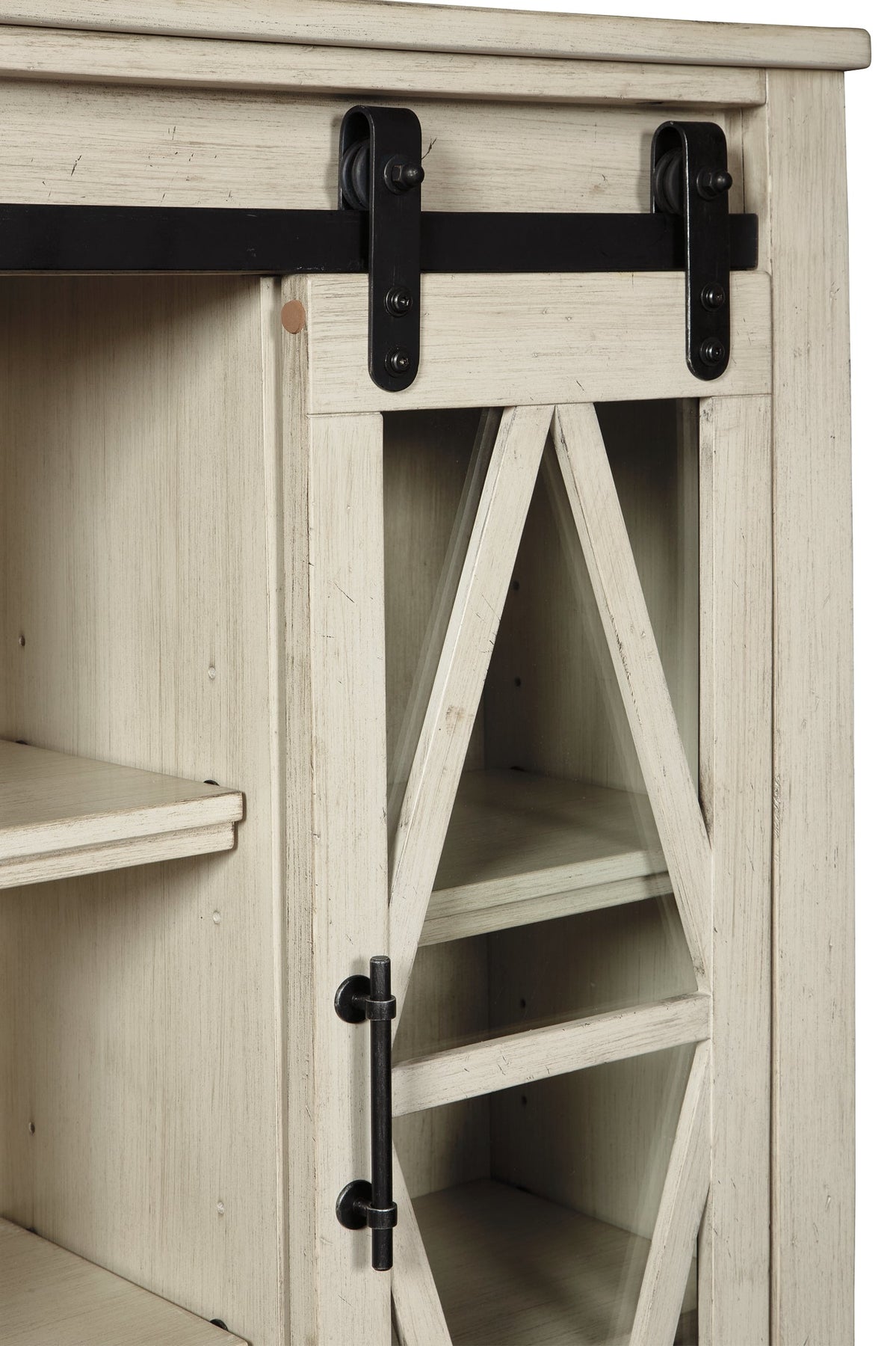 Details | Made of wood and engineered wood, Black finished metal hardware, Sliding door with glass panel front, 4 adjustable shelves, Assembly required | |