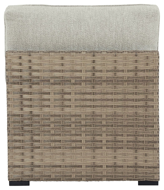 Details | Set of 2, Loose, reversible cushions, Easy-clean polyester (Nuvella®) upholstery remains vibrant and resists stains, All-weather foam cushion core wrapped in soft polyester, Clean fabric with mild soap and water, let air dry; for stubborn stains, use a solution of 1 cup bleach to 1 gallon water, Imported fabric and fill, All-weather resin wicker handwoven over rust-free aluminum frame with durable powder coated finish, Can be sold individually or with other pieces in the sectional, Stainless steel hardware, Assembly required | |