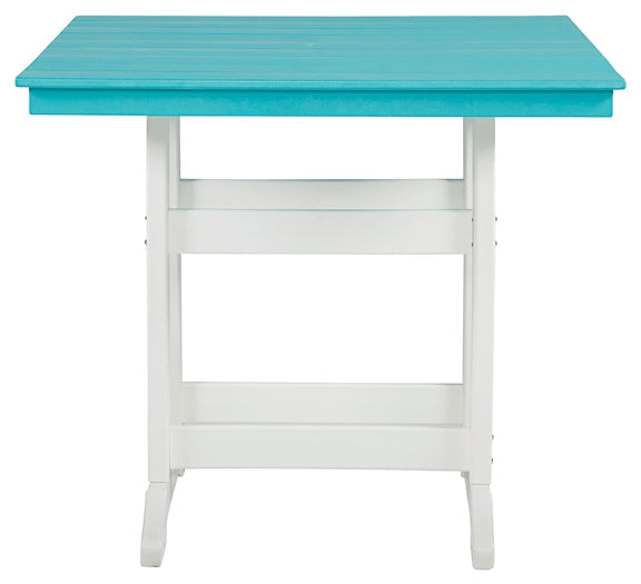 Details | Made of durable and sturdy MEGA TUFF™ HDPE material, MEGA TUFF™ HDPE surfaces are made of high-density polyethylene, which gives the wood look you love and the weather resistance you crave, Aluminum sub-structure for extra tabletop support, Stainless steel hardware, Designed to withstand the harsh elements of the outdoors, Two-tone turquoise/white color, Counter height, Umbrella hole with cover cap (umbrella not included), Assembly required | |
