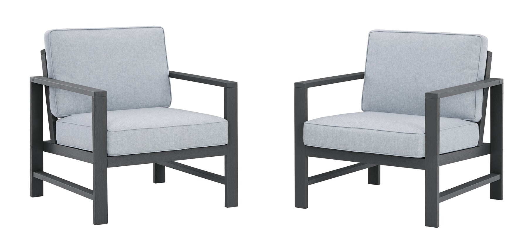 Details | Set of 2 chairs, Made of eucalyptus wood with slatted styling, Stainless steel hardware, Seat cushions and back pillows covered in Nuvella® (solution-dyed polyester) high-performance fabric, All-weather foam cushion core wrapped in soft polyester, Clean fabric with mild soap and water, let air dry; for stubborn stains, use a solution of 1 cup bleach to 1 gallon water, Imported fabric and fill, Assembly required | |