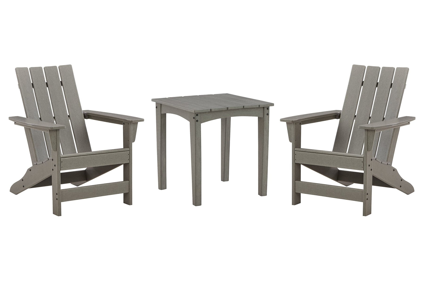 Details | Includes outdoor end table and 2 Adirondack chairs, Made of HDPE material, Gray finish with textured wood look, Chair with slatted styling; table with slatted top, Assembly required | |
