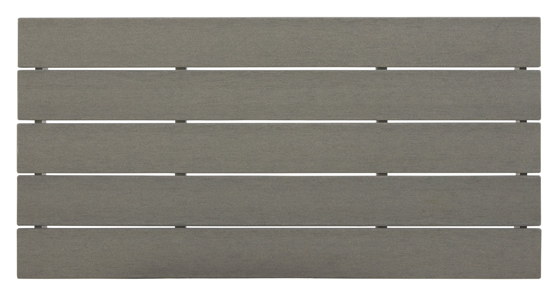 Details | Includes cocktail table, sofa and set of two lounge chairs , Table, sofa and chair made of HDPE material, Table, sofa and chair with gray finish with textured wood look, Table with slatted top, Seat/back cushions and throw pillows covered in solution-dyed Nuvella® (polyester) high-performance fabric, All-weather foam cushion core wrapped in soft polyester, 2 throw pillows included, Clean fabric with mild soap and water, let air dry; for stubborn stains, use a solution of 1 cup bleach to 1 gallon water, Imported fabric and fill | |
