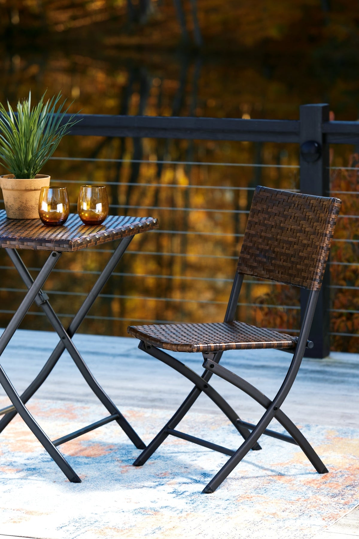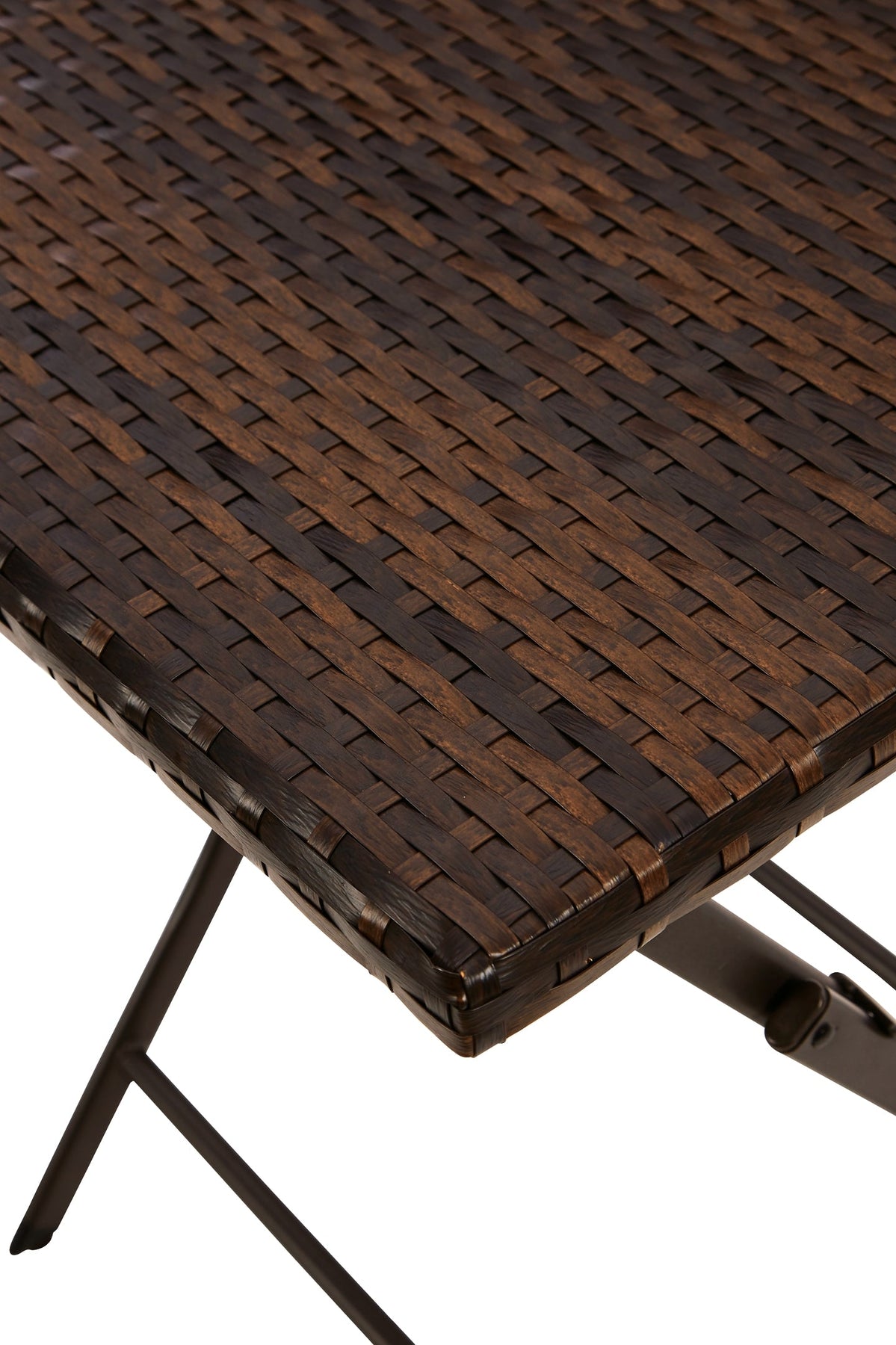 Superior outdoor relaxation comes in a simply stylish package with this outdoor table and chair set. Blending form and function, it combines a foldable design with brown resin wicker that withstands the elements while remaining easy on the eyes. This set is built for strength and stability, creating a casually cool outdoor seating area that’s meant to last.