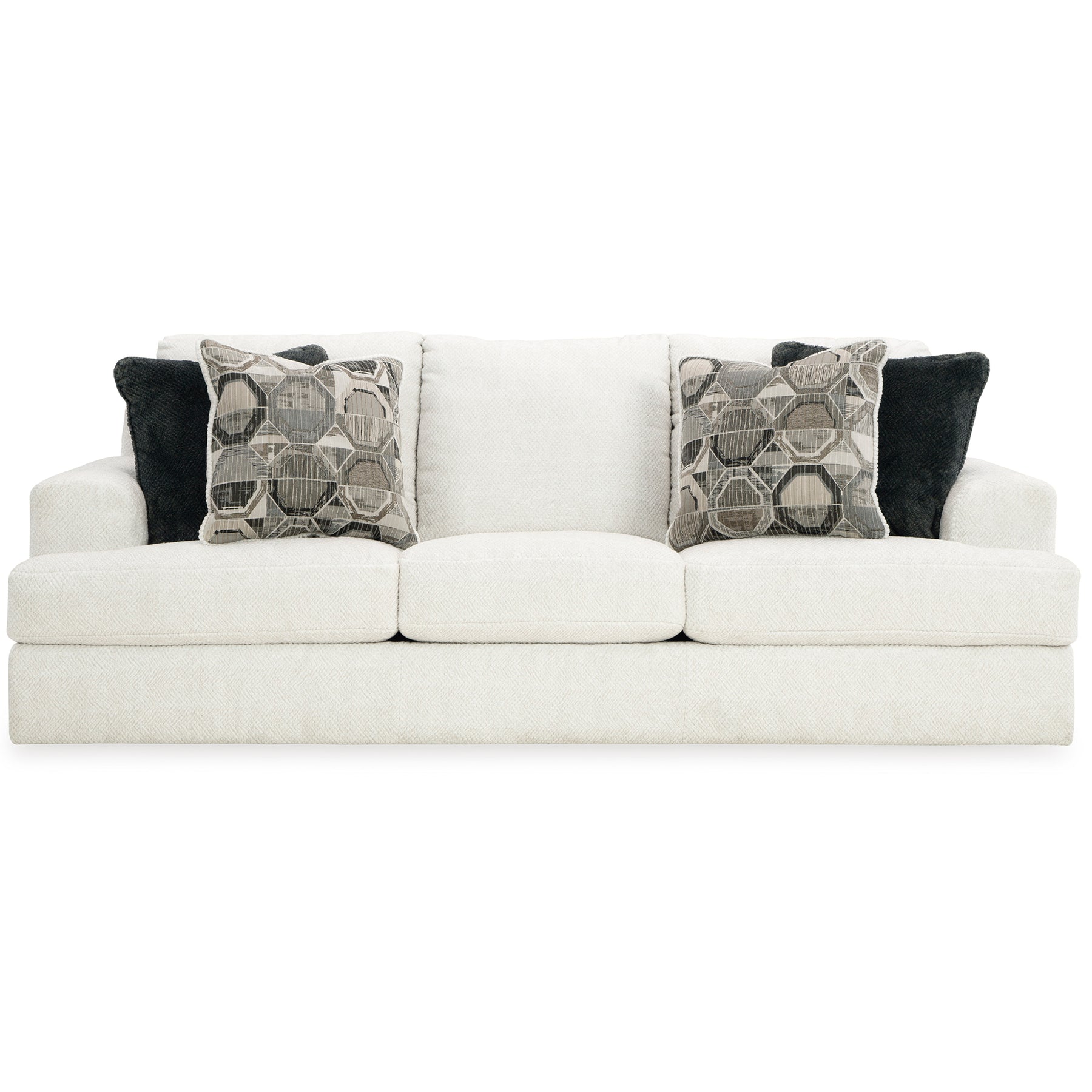 Details | Corner-blocked frame, Attached back and reversible seat cushions, High-resiliency foam cushions wrapped in thick poly fiber, Accent pillows included, Pillows with soft polyfill, Polyester upholstery, Non-skid legs, Platform foundation system resists sagging 3x better than spring system after 20,000 testing cycles by providing more even support, Smooth platform foundation maintains tight, wrinkle-free look without dips or sags that can occur over time with sinuous spring foundations | |