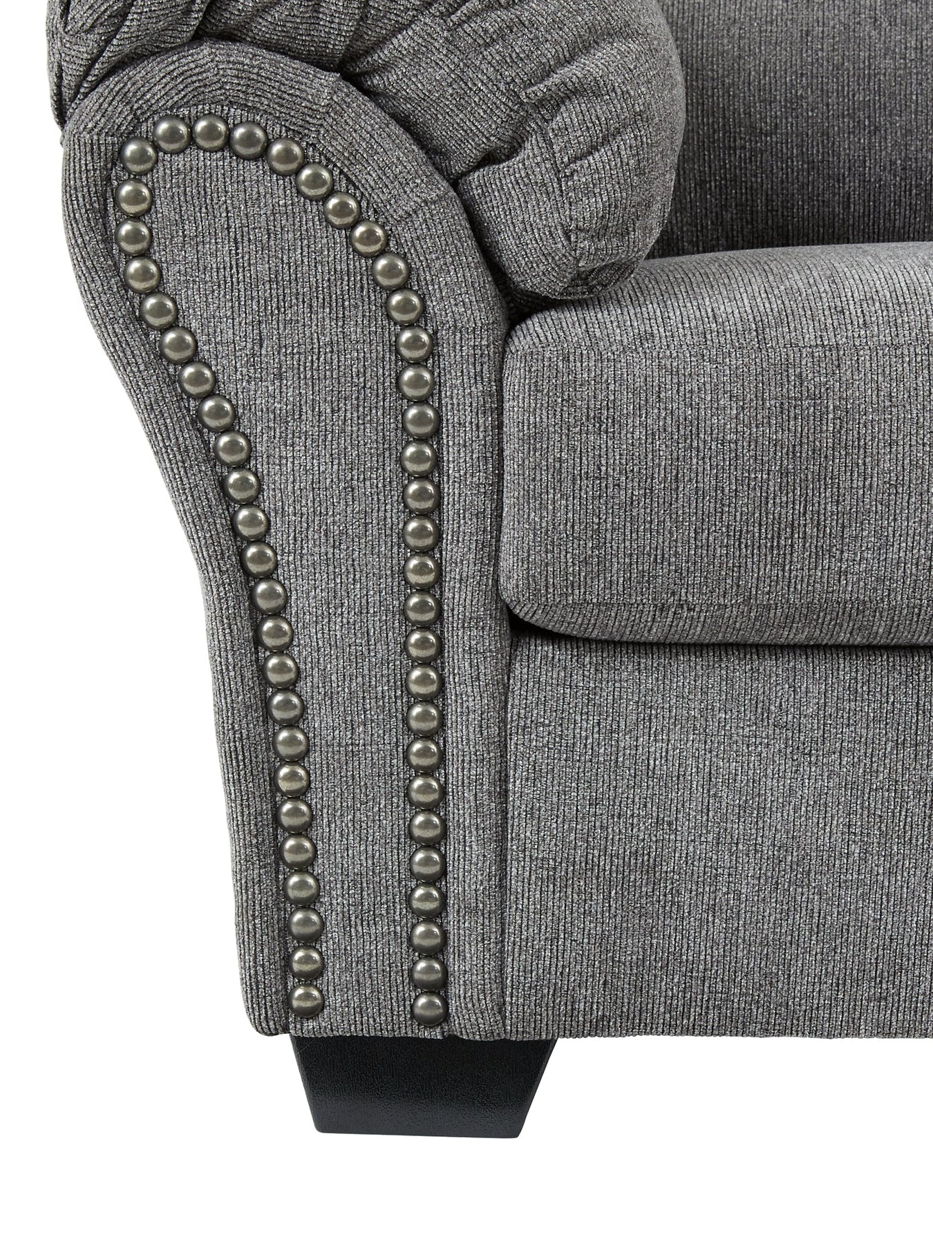 Details | 2810538: Corner-blocked frame, Attached back and loose seat cushions, High-quality foam cushions wrapped in poly fiber, Polyester upholstery, Black nickel-tone nailhead trim, Exposed feet with faux wood finish, Platform foundation system resists sagging 3x better than spring system after 20,000 testing cycles by providing more even support, Smooth platform foundation maintains tight, wrinkle-free look without dips or sags that can occur over time with sinuous spring foundations, 2810535: Corner-blocked frame, Attached back and loose seat cushions, High-quality foam cushions wrapped in poly fiber, Polyester upholstery, Black nickel-tone nailhead trim, Exposed feet with faux wood finish, Platform foundation system resists sagging 3x better than spring system after 20,000 testing cycles by providing more even support, Smooth platform foundation maintains tight, wrinkle-free look without dips or sags that can occur over time with sinuous spring foundations, | |